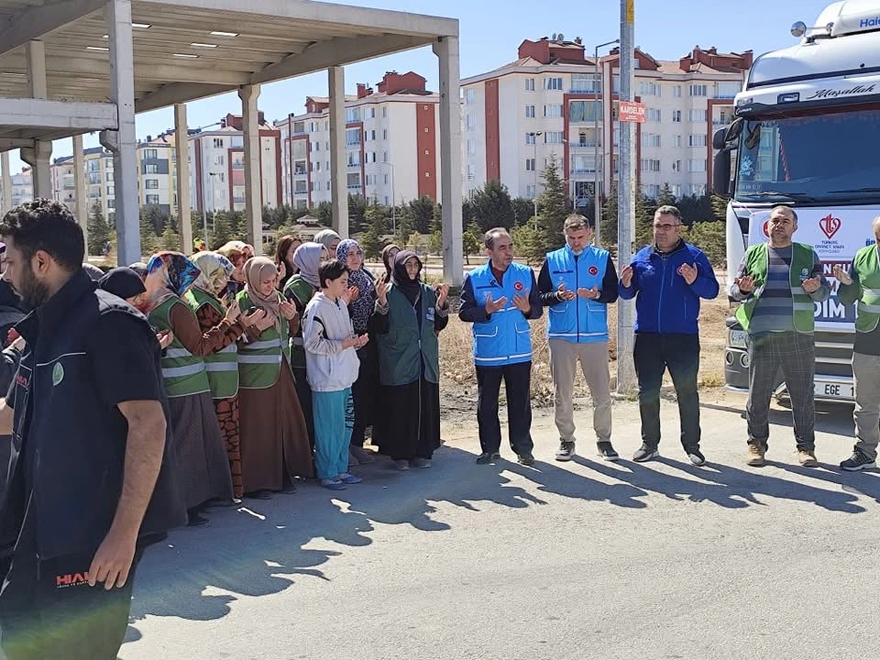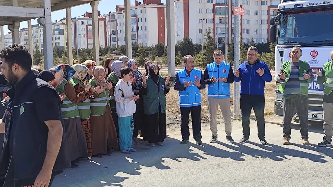 TDV Konya Şubesi ve Önce İyilik Derneği iş birliğiyle hazırlanan yardım tırlarının uğurlama programına Konya İl Müftü Yardımcısı Hüseyin Avni Böge, TDV Konya Şube Sorumlusu Uzman Müntaz Nuzumlalı, Karatay İlçe Müftülüğü Vaizi ve Önce İyilik Derneği Kurucu Başkanı Fatma Hale Sağım ile dernek gönüllüleri katıldı. İl Müftü Yardımcısı Böge'nin yaptığı dua ile uğurlanan tırlarda 4.488 adet gıda kolisi ve 28.309 adet tekstil ile giyim malzemesi bulunuyor.