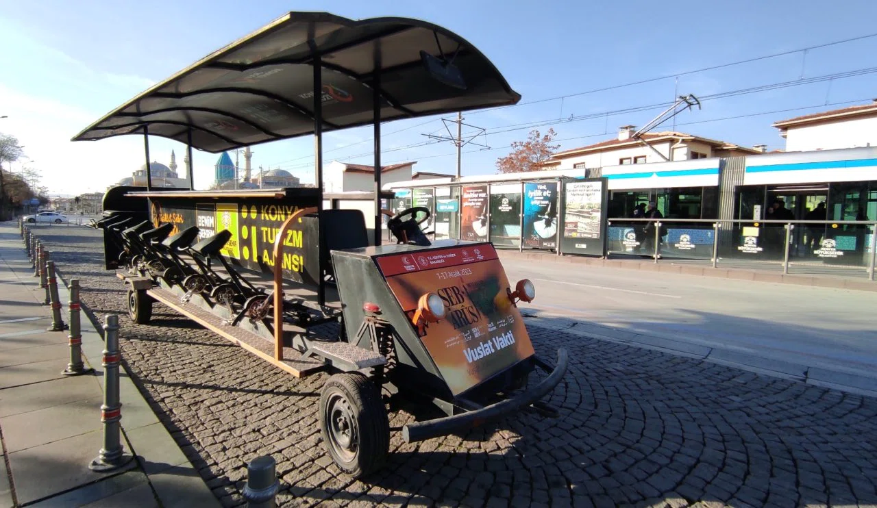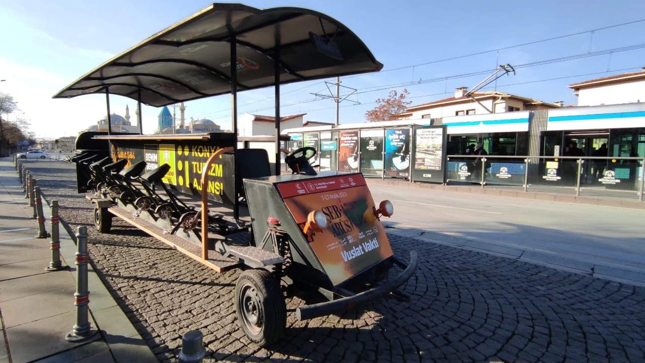 Velesbüs olarak adlandırılan araç Şeb-i Arus etkinliklerini izlemek üzere Konya'ya gelen yerli ve yabancı turistlerin dikkatini çekiyor. Mevlana Müzesi'nin bulunduğu Aslanlı Kışla Caddesi güzergahında sergilenen velesbüs yürüyüş yolundan gelip geçenlerin dikkatini çekiyor.