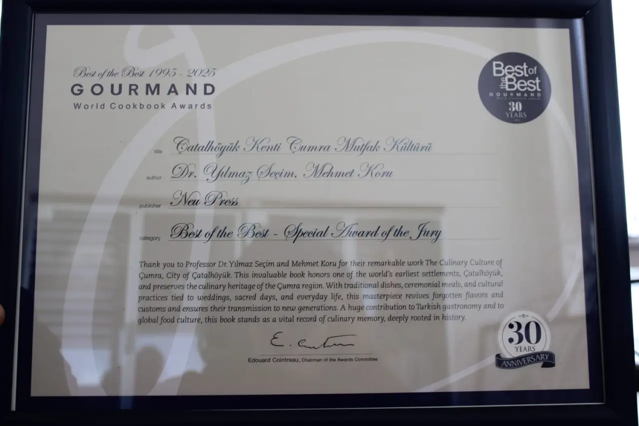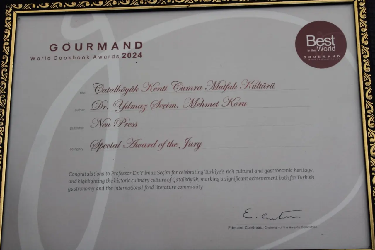 Çumra Çatalhöyük Bölgesi'nde devam eden arkeolojik kazılardan elde edilen bulgulardan yola çıkarak kitapta bölgenin yemek kültürünü ele alan Necmettin Erbakan Üniversitesi Turizm Fakültesi Gastronomi ve Mutfak Sanatları bölüm başkanı Doç. Dr. Yılmaz Seçim, ödülün Konya'nın kültürel mirası ve Çatalhöyük'ün tanıtımı açısından da önemli olduğunu söyledi.