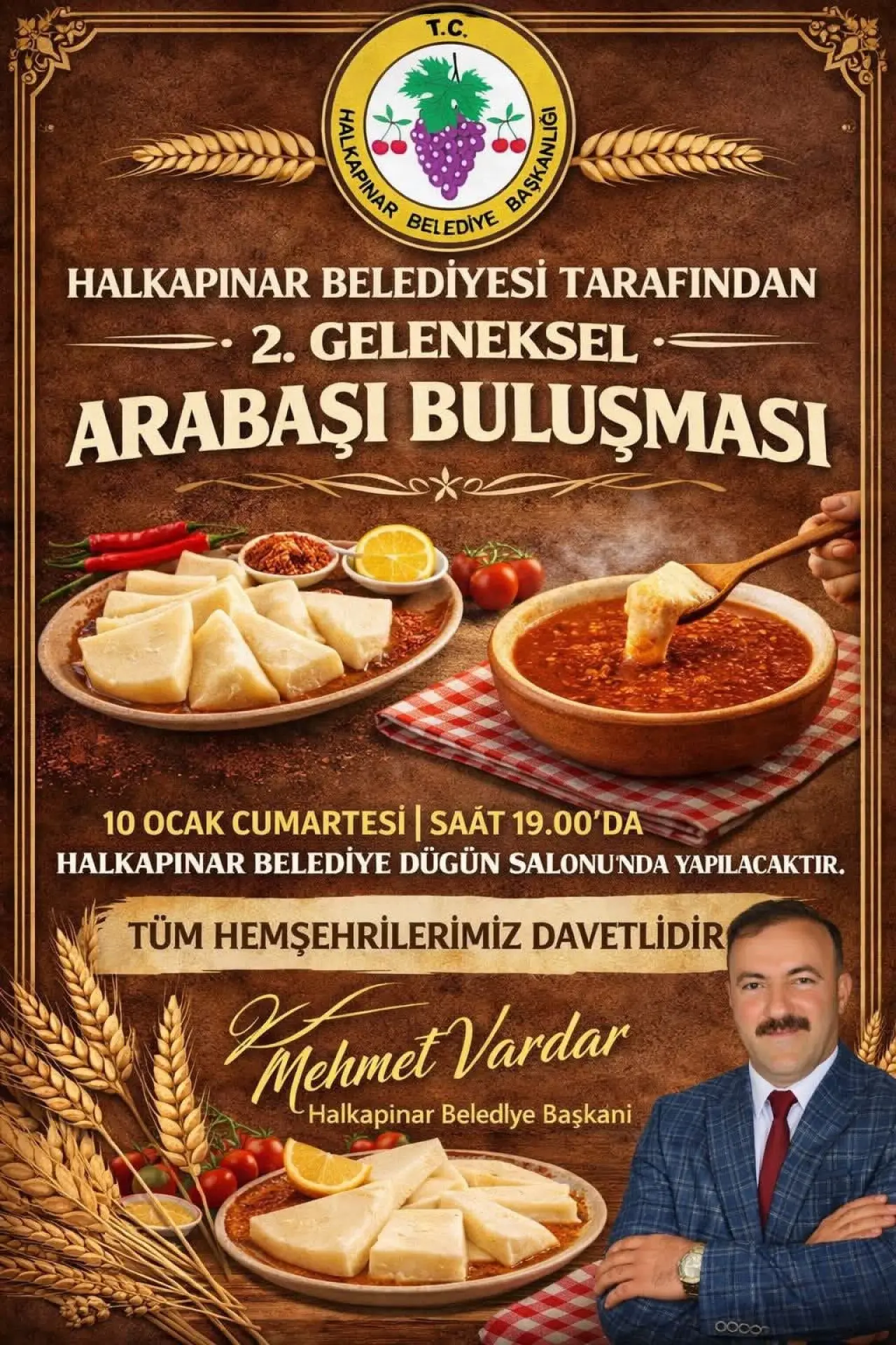 Halkapınar Belediyesi tarafından bu yıl ikincisi düzenlenecek olan Geleneksel Arabaşı Buluşması, 10 Ocak Cumartesi günü gerçekleştirilecek. Etkinlik, saat 19.00’da Halkapınar Belediye Düğün Salonu’nda yapılacak.