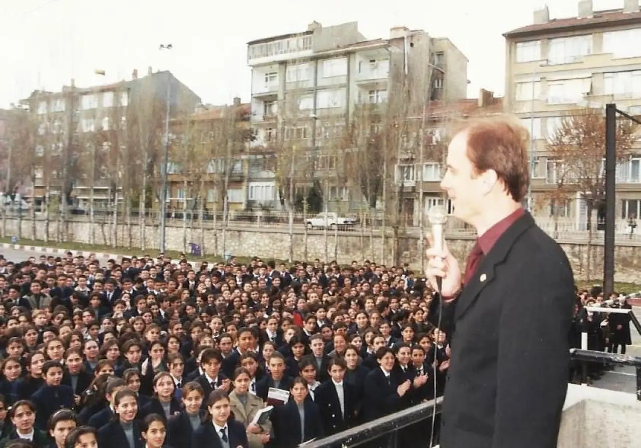 İkinci fotoğraf: Konya Gazi Lisesi’nde düzenlenen 24 Kasım Öğretmenler Günü kutlama programından bir an.
