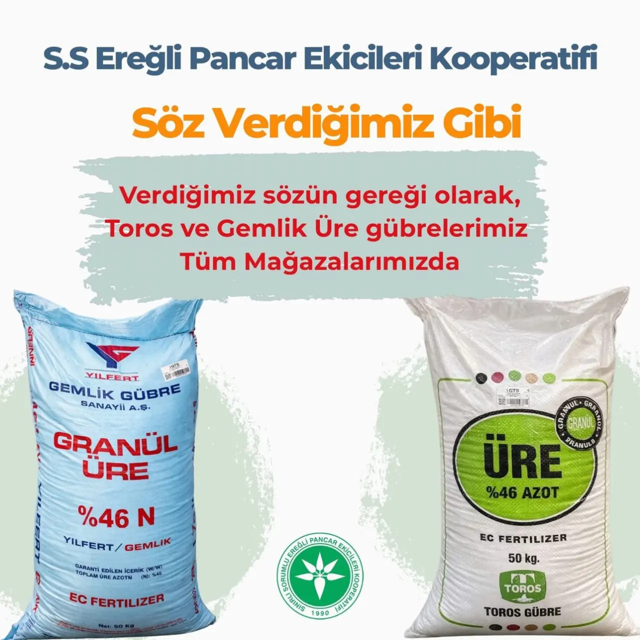 Ereğli Pancar Ekicileri Kooperatifi Başkanı Yunus Çelik, seçim sürecinde üreticilere verdikleri sözleri bir bir hayata geçirdiklerini belirterek, Toros ve Gemlik marka üre gübrelerinin kooperatifin tüm mağazalarında satışa sunulduğunu açıkladı.