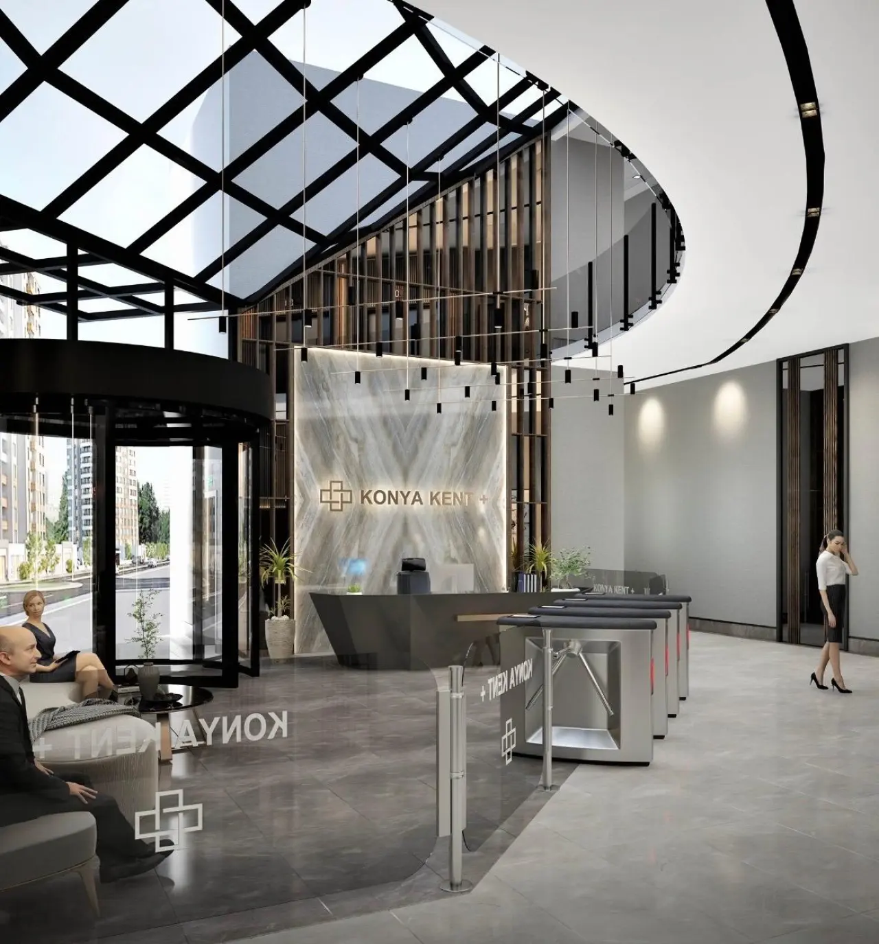 Kentplus, yüksek tavanlı ofisleri, doğal malzeme dokularıyla oluşturulan iç tasarımı, profesyonel karşılama alanı ve özel tasarlanmış bina atmosferiyle modern bir iş yaşamı vadediyor.