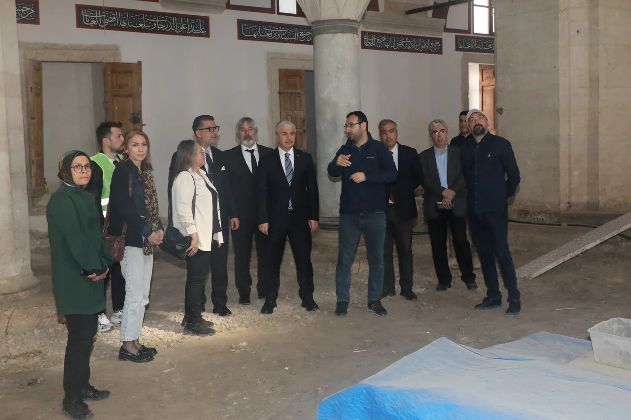 Vali Akın, beraberindeki Bilim Kurulu üyeleri ve Vakıflar Bölge Müdürlüğü teknik personeli ile birlikte camide yürütülen çalışmalar hakkında yerinde bilgi aldı. Çalışmaların son durumu hakkında detaylı brifing alan Vali Akın, tarihi yapının korunması ve güçlendirme sürecinin titizlikle sürdürüldüğünü ifade etti.