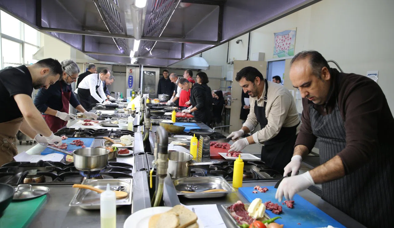 NEÜ Gastronomi ve Mutfak Sanatları Uygulama Atölyesi’nde yemeklerin kura usulü ile belirlendiği etkinlikte Meram MYO öğretim elemanları daha iyi yemeği yapmak için birbirleri ile kıyasıya yarıştı. Otel, Lokanta ve İkram Hizmetleri Bölümü Aşçılık Programı öğretim elemanlarının jüri olarak yemekleri değerlendirdiği yarışmada, Öğr. Gör. Murat Çalış, “Ankara Tava” yemeğiyle birinci, Doç. Dr. Süleyman Doğu, “Özbek Pilavı” ile ikinci, Öğr. Gör. Ali Giray ise “Beef Stroganoff” yemeğiyle üçüncü oldu.