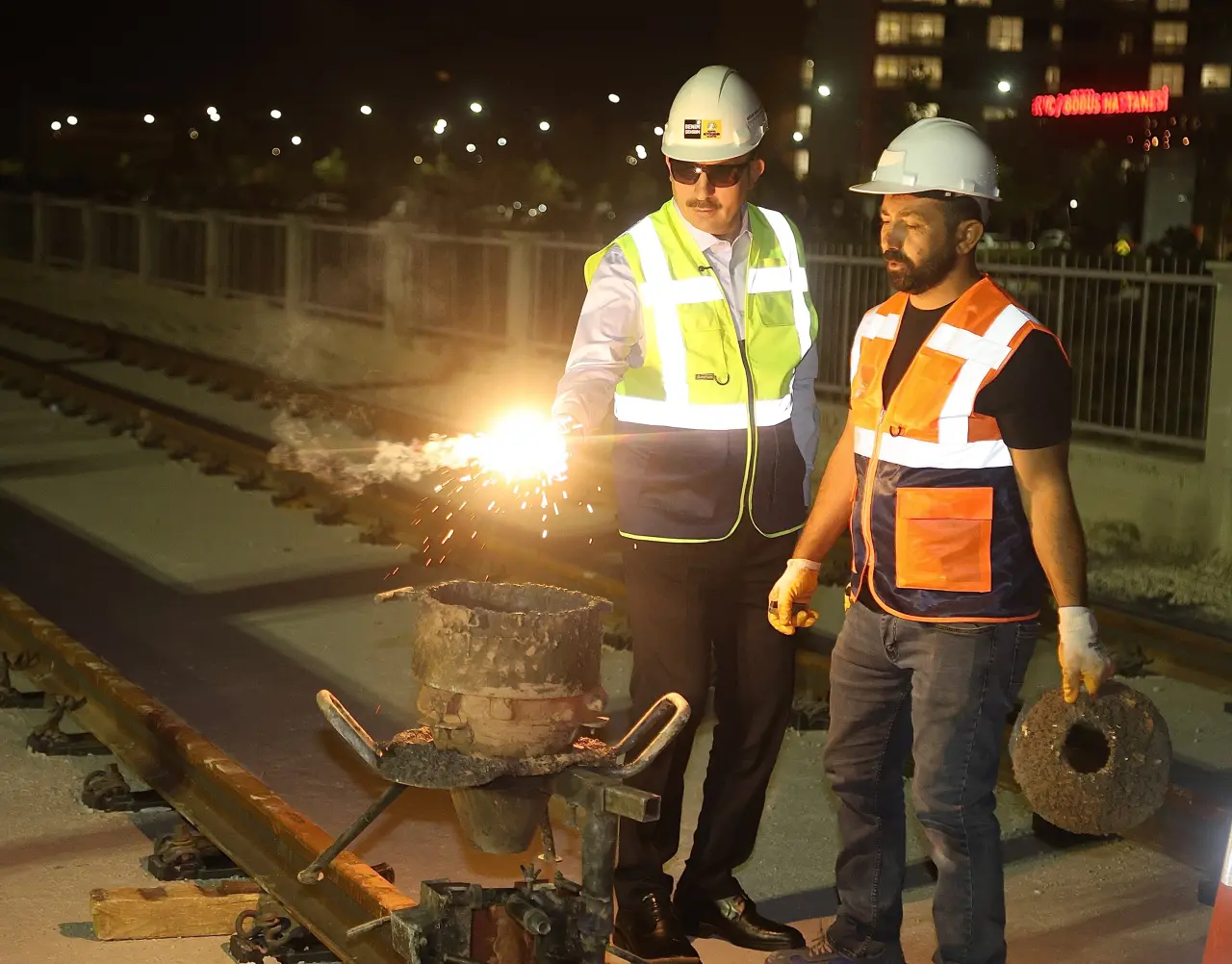 Konya Büyükşehir Belediye Başkanı Uğur İbrahim Altay, dün akşam yapılan çalışmaları yerinde inceleyerek, montajı tamamlanan rayların birleştirme işlemini takip etti. Başkan Altay, hattın yapım çalışmalarının kesintisiz devam ettiğini belirterek, “Hattaki çalışmalarla önemli bir eşiği daha geçtik. Montajı tamamlanan raylar arasındaki termit ve alın kaynak işlemini gerçekleştirdik. Böylece sona yaklaşma konusunda bir iş daha halledilmiş oldu” dedi.
