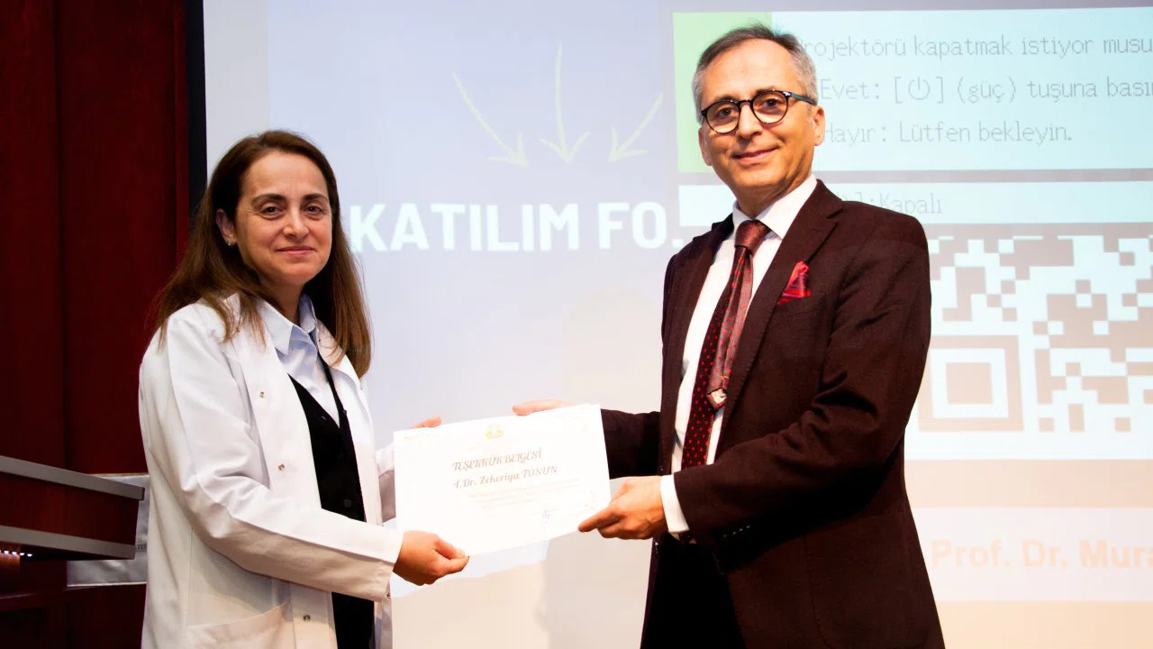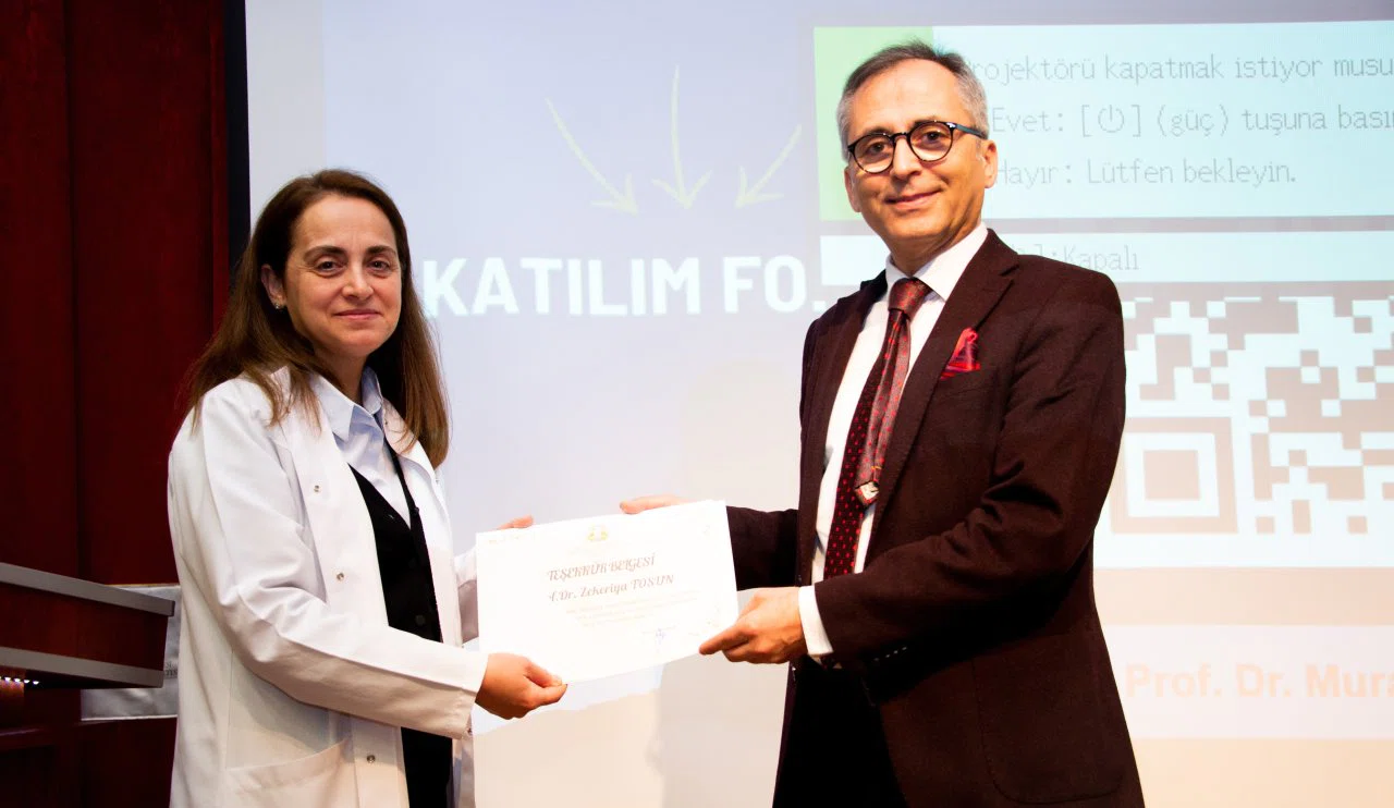 Konferans soru – cevap bölümünün ardından Diş Hekimliği Fakültesi Dekanı Prof. Dr. Gül Tosun’un konuşmacılara teşekkür belgesi takdimiyle sona erdi.