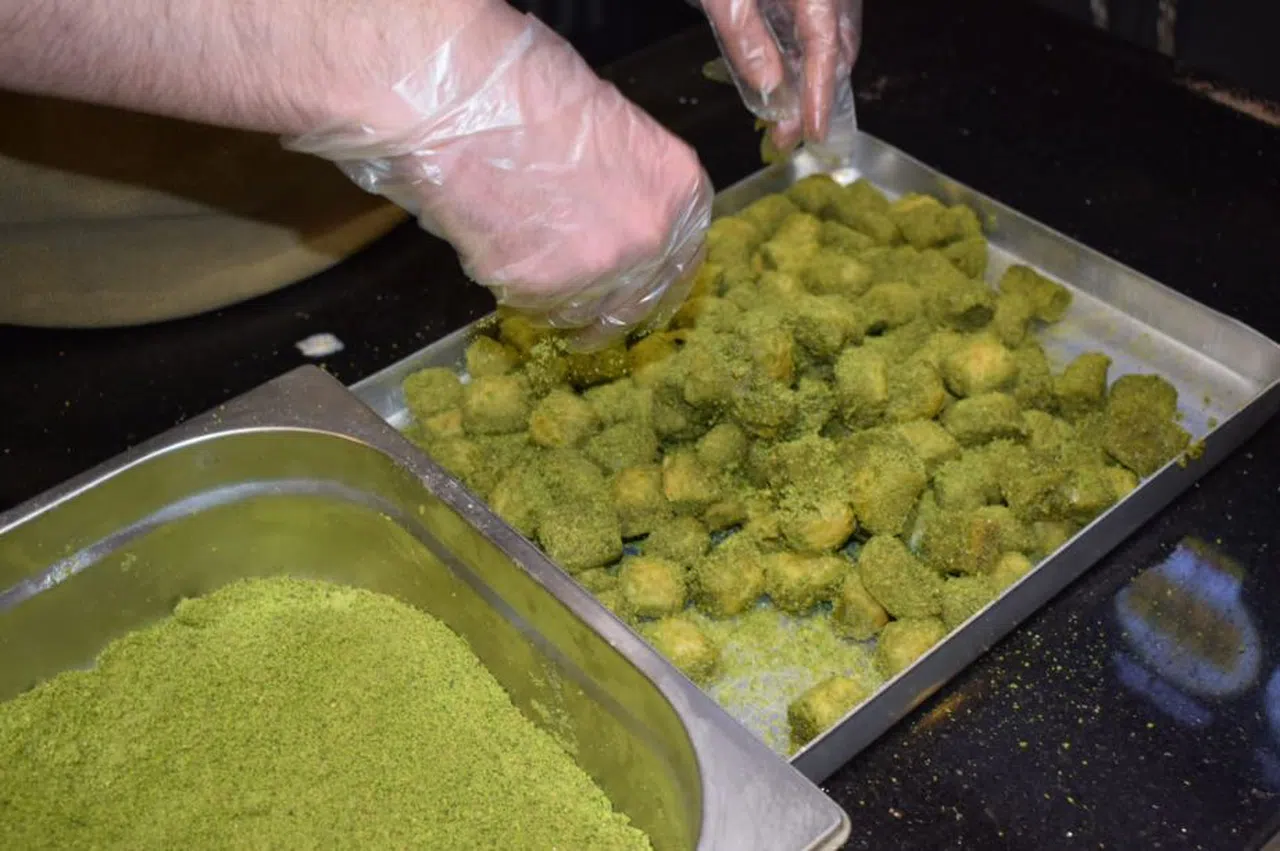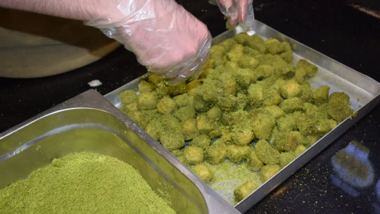 Yüksek kaliteli malzemelerle hazırlanan Dökme Baklava, adını içine dökülen özel fıstıklarla hazırlanışından alıyor. Yusuf Tetik, baklavada kullandıkları malzemelerin özenle seçildiğini belirterek, “Antep’ten özel fıstık, birinci sınıf ceviz ve en kaliteli sade yağ ile bu eşsiz lezzeti ortaya çıkarıyoruz” dedi.