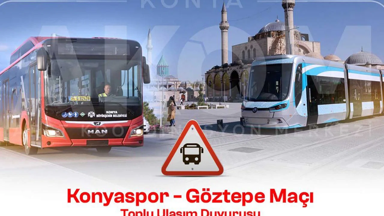 “12 Nisan Cumartesi günü saat 16.00’da oynanacak Konyaspor - Göztepe maçı nedeniyle şehir içi toplu ulaşımda düzenlemeler yapılacaktır.