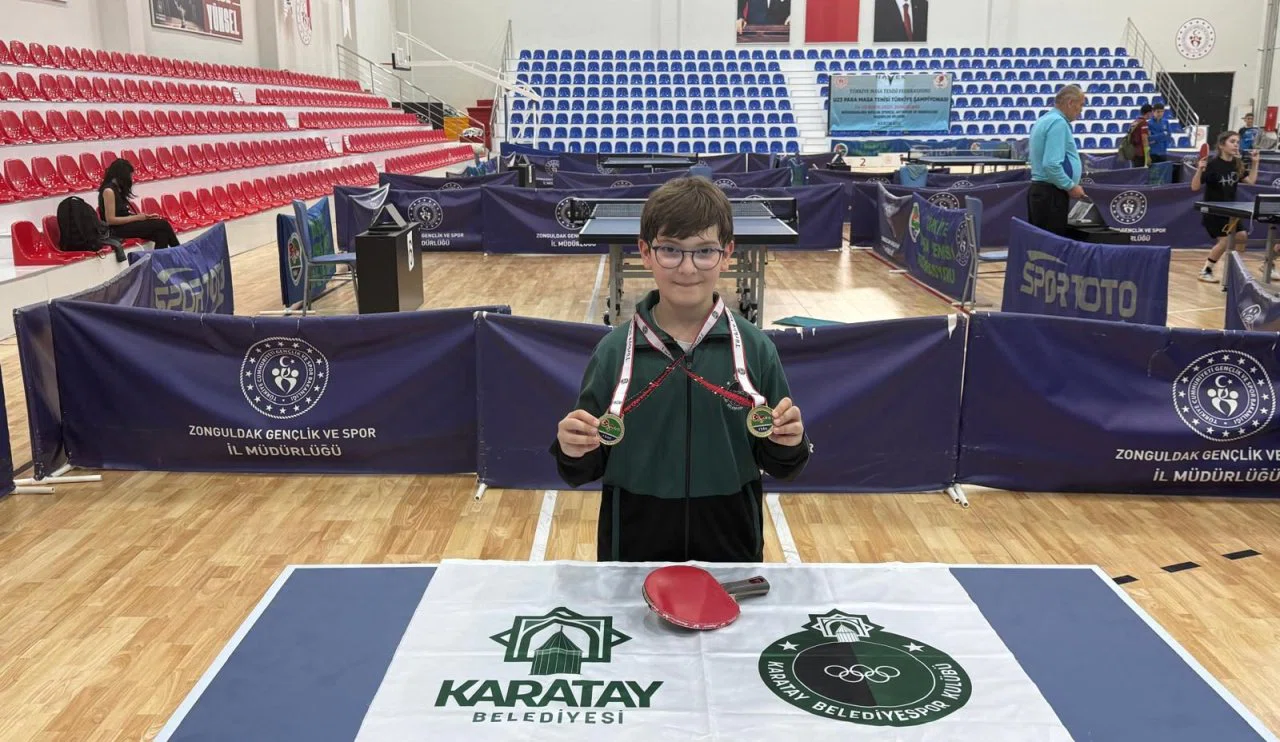 Karatay Belediyespor’un başarılı sporcusu Tahir Efe Şahin, Zonguldak’ta düzenlenen 23 Yaş Altı Paralimpik Masa Tenisi Türkiye Şampiyonası’nda 2 altın ve 1 gümüş madalya kazanarak Karatay’a büyük bir gurur yaşattı.