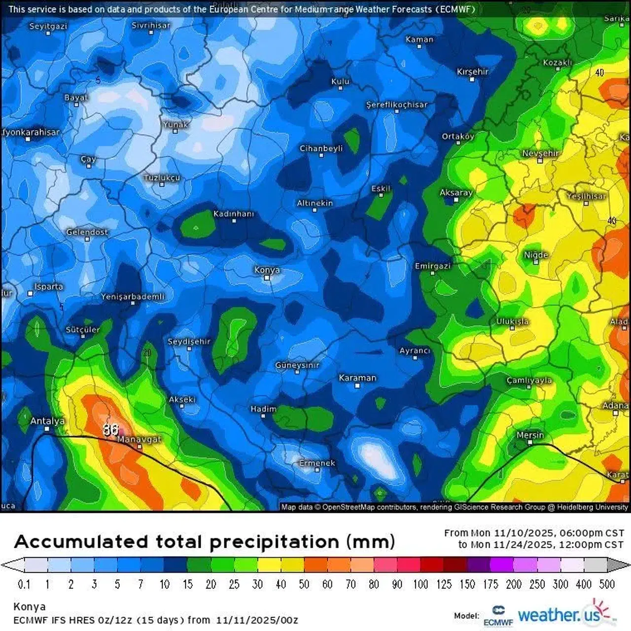 Demir, sabah gelen meteorolojik verilere göre iki farklı modelin öne çıktığını söyledi. “Yağışlı sisteme kısa bir süre kala bölgemiz için en tutarlı iki model arasında farkındalık oluştu. Birisi sistemi biraz daha doğulu indirip Emirgazi üzerinden doğuya doğru hareket etmesini bekliyor. Diğer model ise direkt Konya üzerinden sistemi indiriyor.” ifadelerini kullandı.