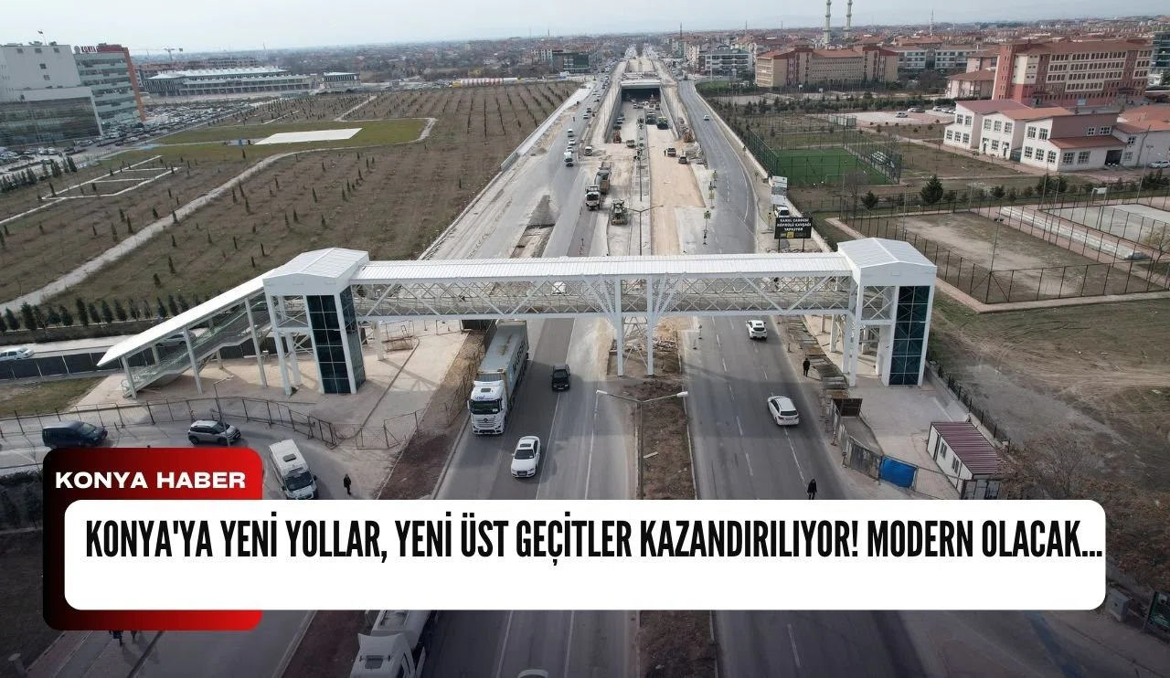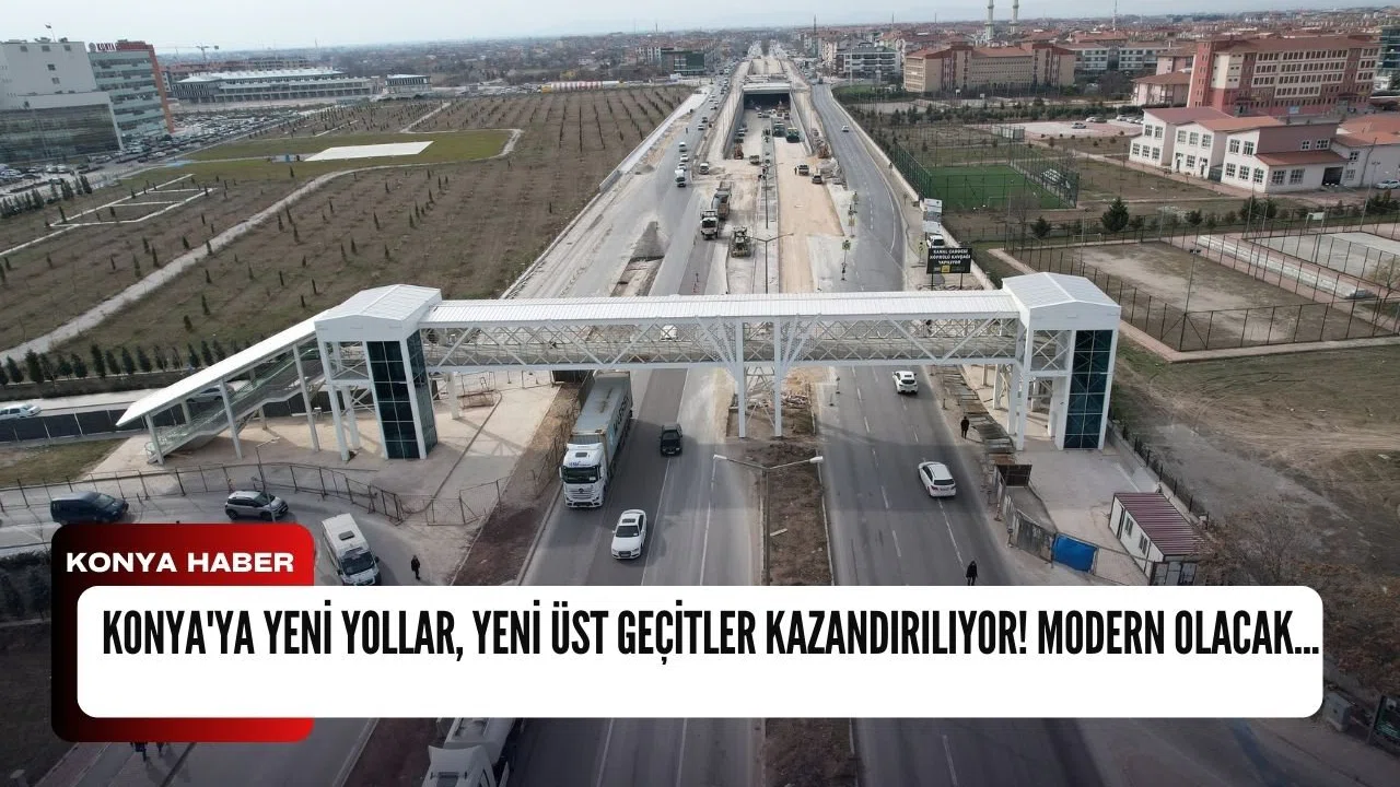 Konya Büyükşehir Belediyesi, Kerkük Caddesi’nde eski yaya üst geçidinin yerinde yeni yaya üst geçit yapımını tamamladı; Şehir Hastanesi önündeki yaya üst geçidini de tamamlamak üzere.