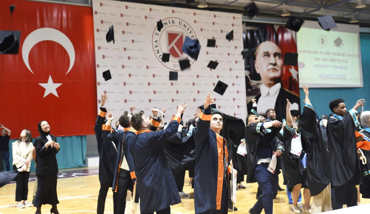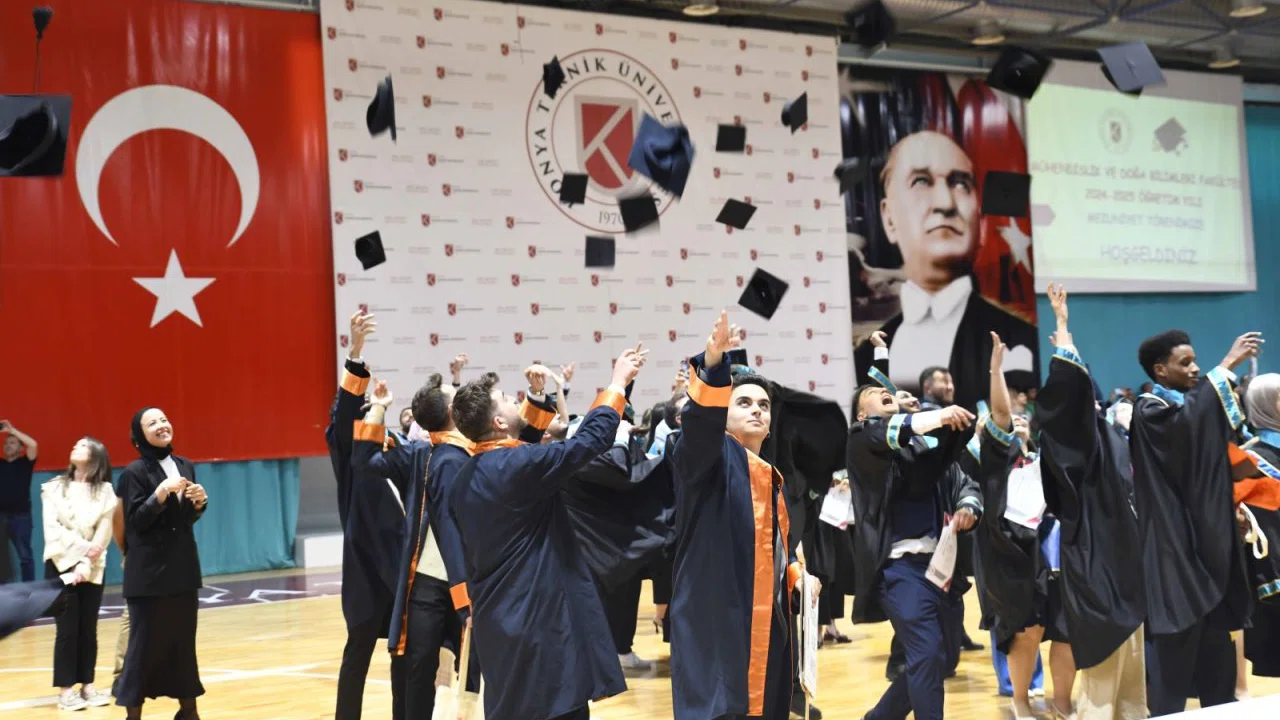 Konya Teknik Üniversitesi (KTÜN) Mühendislik ve Doğa Bilimleri Fakültesi, mezuniyet sevinciyle dolup taştı. KTÜN Gelişim Yerleşkesi Kapalı Spor Salonu’nda düzenlenen törenle mezun olan öğrenciler, diplomalarını alarak hayatlarının yeni bir dönemine adım attı. Törene, öğrencilerin yanı sıra aileler ve akademik kadro yoğun katılım gösterdi.