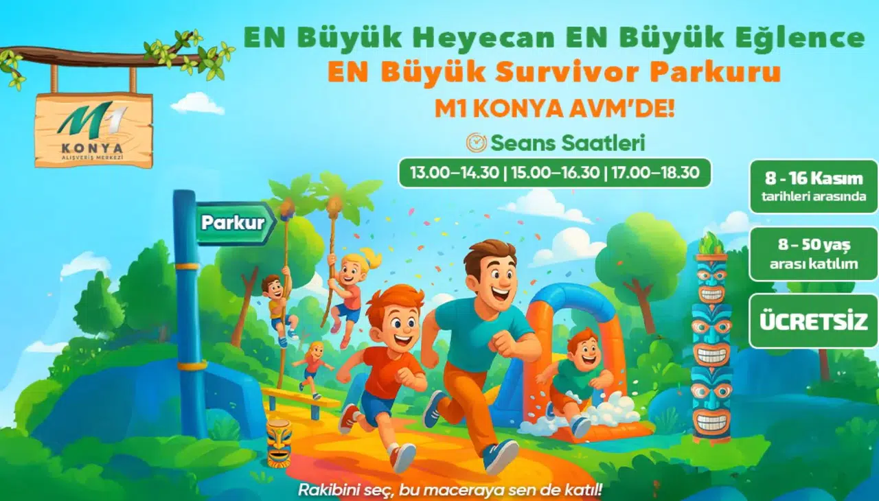 Konya’nın önde gelen alışveriş ve yaşam merkezlerinden M1 Konya AVM, Kasım ayında ziyaretçilerine eğlence dolu bir deneyim sunuyor. Fiba Commercial Properties tarafından yönetilen AVM’de, 8-16 Kasım tarihleri arasında kurulacak dev Survivor parkuru, çocuklardan yetişkinlere her yaş grubuna adrenalin dolu anlar yaşatacak.