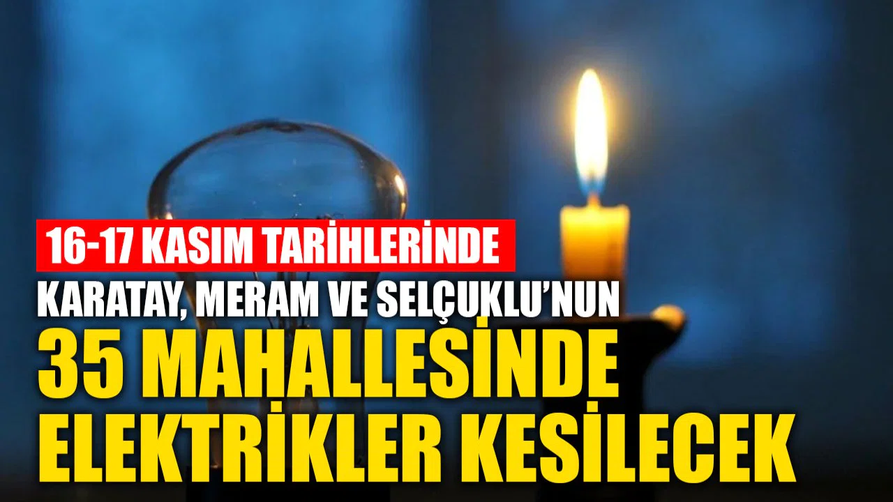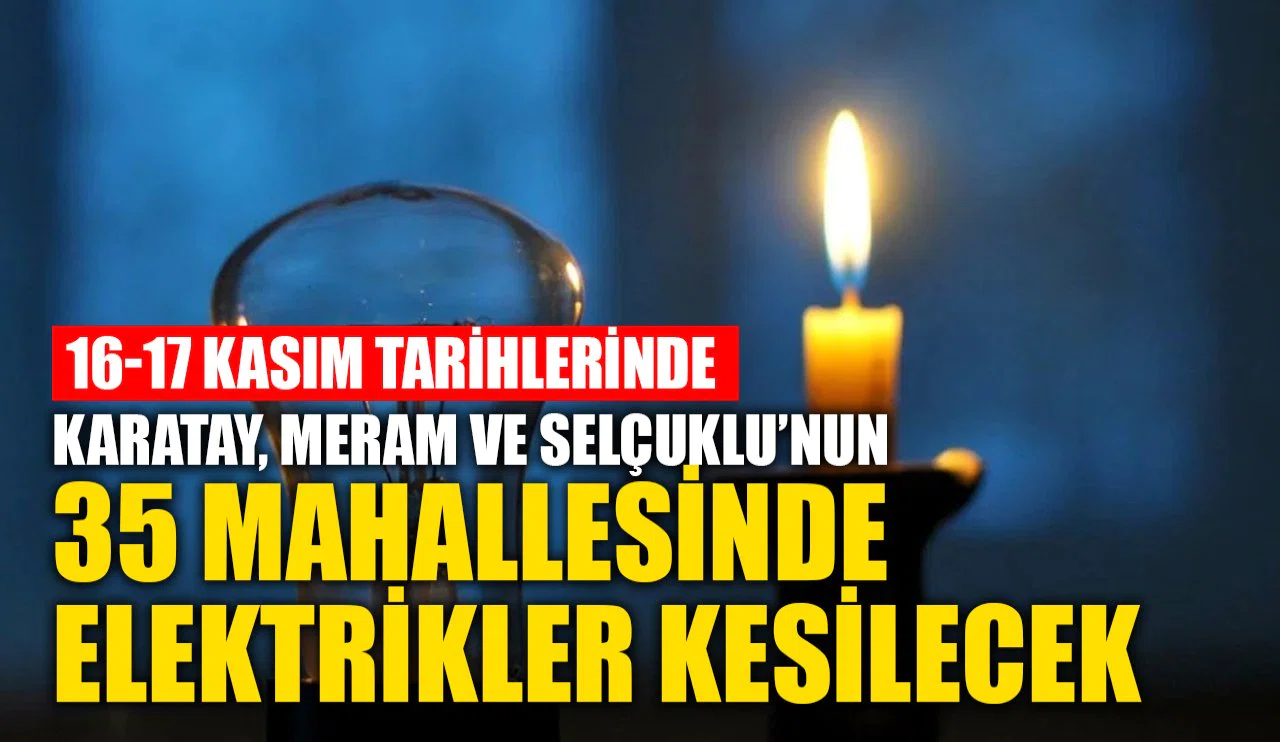 Konya’nın Meram ilçesinde 16 Kasım 2024 ve 17 Kasım 2024 tarihlerinde elektrik kesintileri yaşanacak. Kesintilerin detayları şu şekilde: