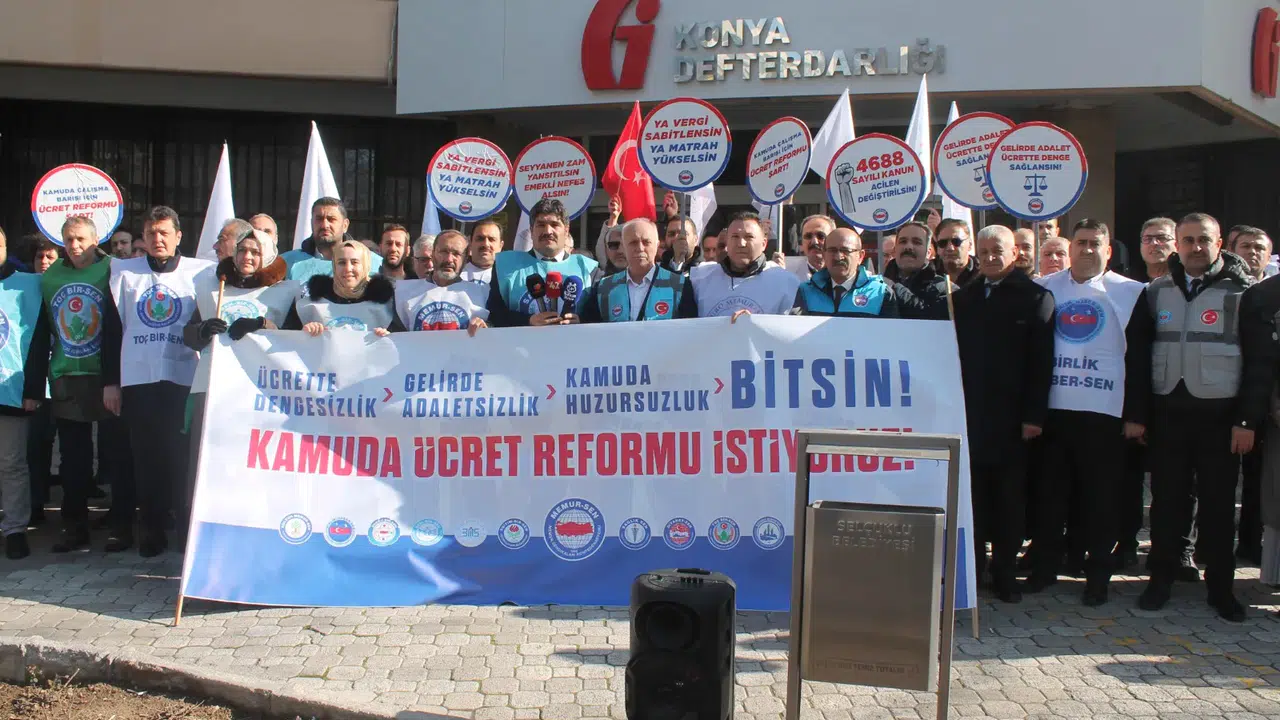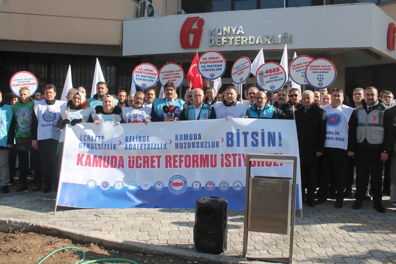 Memur-Sen Konya İl Temsilciliği, Konya’da Maliye binası önünde basın açıklaması yaparak kamu çalışanlarının ücret ve gelir adaletsizliğine dikkat çekti. Açıklamada konuşan Memur-Sen Konya İl Temsilcisi Nazif Karlıer, “Ücrette dengesizlik, gelirde adaletsizlik, kamuda huzursuzluk bitsin” çağrısında bulundu.