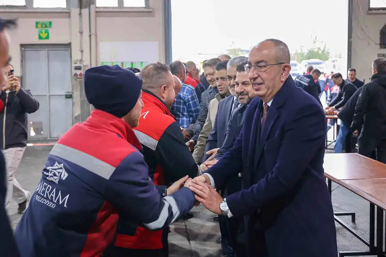 Sabahın erken saatlerinde gerçekleşen programda samimi ve sıcak görüntüler yaşanırken, Başkan Kavuş belediye çalışanlarının Meram’a sunduğu hizmetlerdeki gayretinin her zaman takdirle karşılandığını ifade etti. Meram Belediyesinin büyük ve güçlü bir aile olduğuna dikkat çeken Kavuş, çalışanların fedakârlıkları sayesinde bayramlarda hizmetlerde herhangi bir aksama yaşanmadığını vurguladı. Bayramların birlik, beraberlik ve dayanışma duygularını güçlendiren özel zamanlar olduğuna değinen Başkan Kavuş, personelin aileleriyle birlikte huzurlu ve mutlu bir bayram geçirmesi temennisinde bulundu.