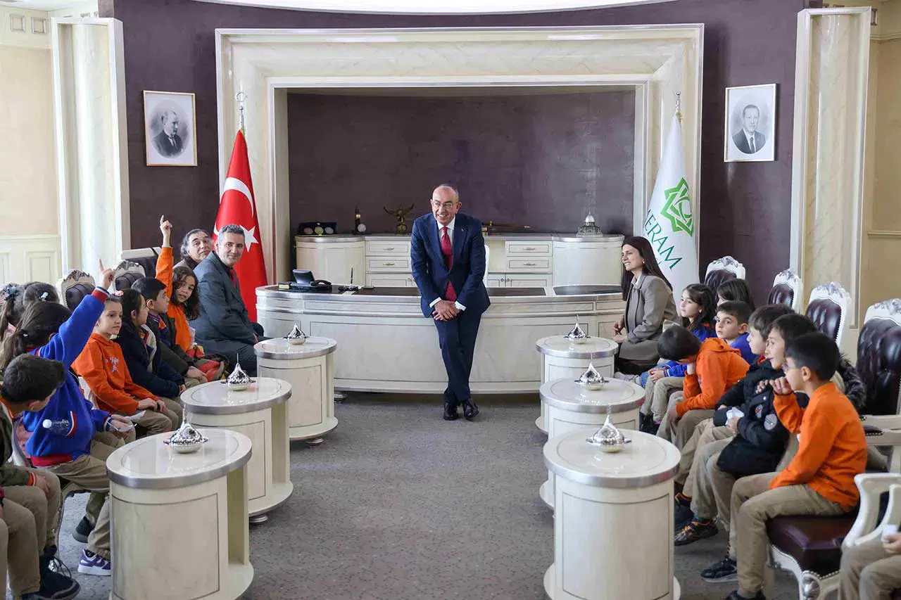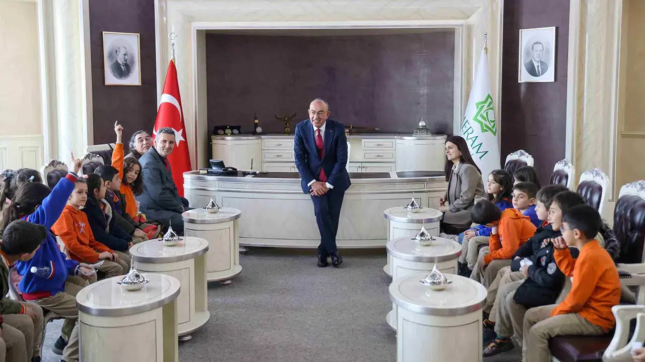 Öğretmenleri eşliğinde gerçekleşen ziyarette minikler, belediyenin tüm birimlerini tek tek gezdi. Her birimde görevli personelden çalışmalar hakkında bilgi alan öğrenciler, belediyenin şehir yaşamındaki rolünü yerinde öğrenme fırsatı buldu. Temizlik hizmetlerinden park ve bahçelere, zabıtadan kültürel faaliyetlere kadar pek çok alanda yapılan çalışmalar çocukların anlayabileceği bir dille anlatıldı. Ziyaretin en heyecanlı anlarından biri ise Meram Belediye Başkanı Mustafa Kavuş ile gerçekleşen buluşma oldu. Başkan Kavuş, öğrencilerle tek tek ilgilenerek samimi bir sohbet gerçekleştirdi. Çocukların belediyecilikle ilgili sorularını içtenlikle yanıtlayan Kavuş, onların hayallerini de dinledi.