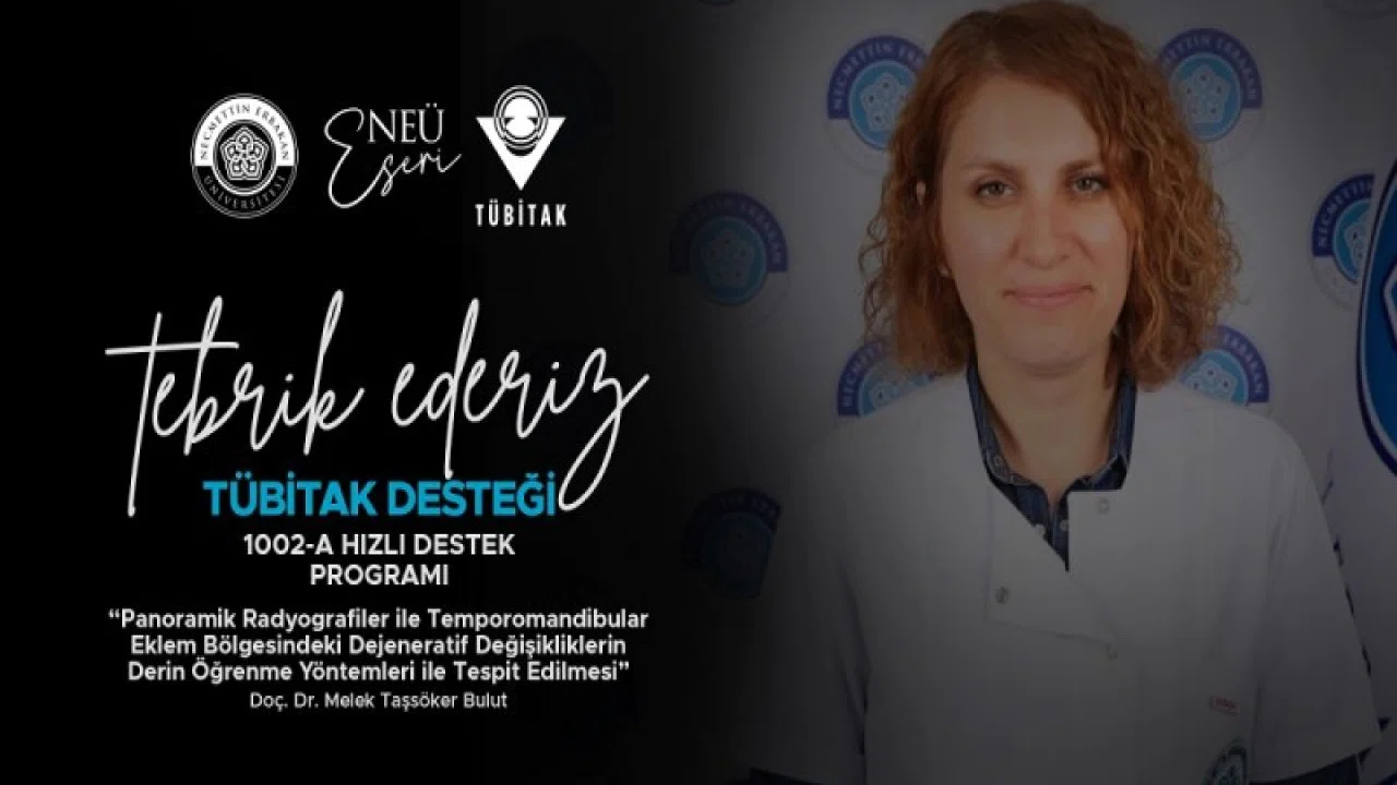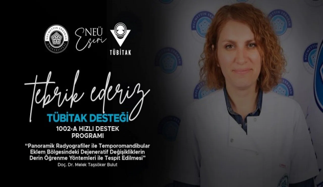 NEÜ Diş Hekimliği Fakültesi Klinik Bilimler Ağız, Diş ve Çene Radyolojisi Ana Bilim Dalı Öğretim Üyesi Doç. Dr. Melek Taşsöker Bulut’un yürütücülüğünü üstlendiği ‘Panoramik Radyografiler ile Temporomandibular Eklem Bölgesindeki Dejeneratif Değişikliklerin Derin Öğrenme Yöntemleri ile Tespit Edilmesi’ projesi, TÜBİTAK 1002 Programı kapsamında destek almaya hak kazandı.