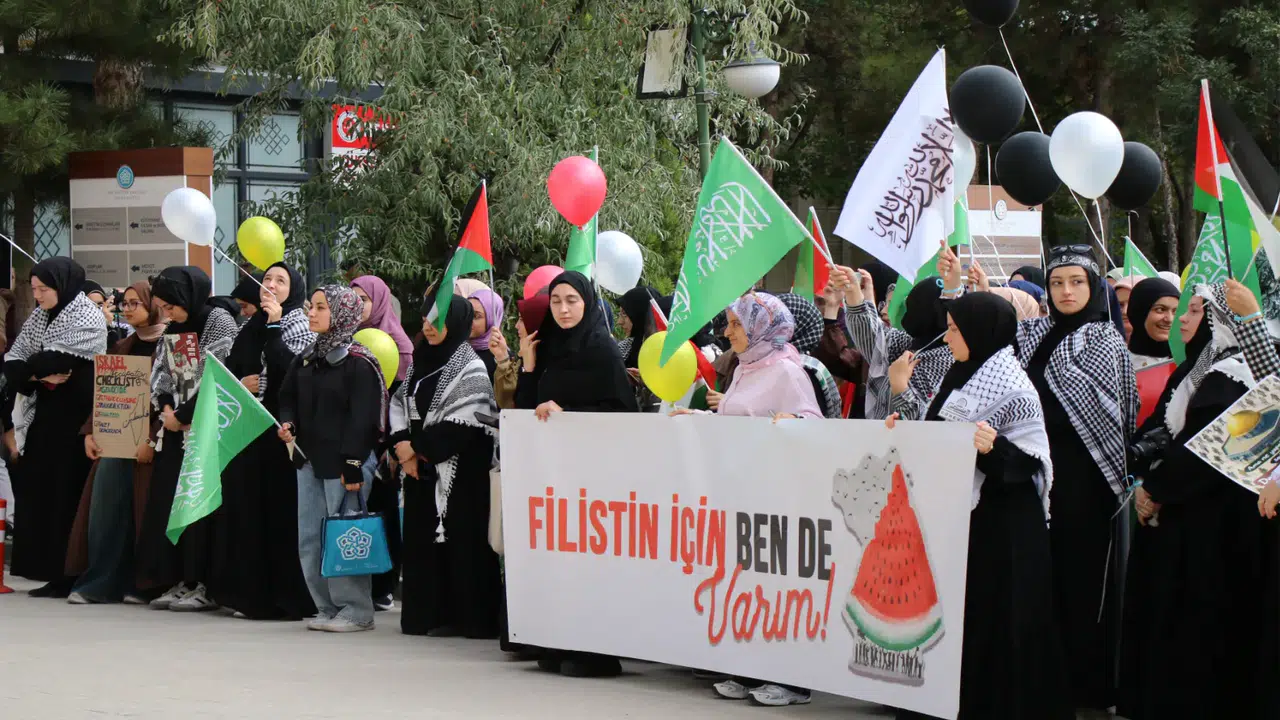 Necmettin Erbakan Üniversitesi (NEÜ) öğrenci toplulukları, Gazze’de yaşanan insanlık dramına dikkat çekmek amacıyla “Gazze için, Sumud için, İnsanlık için” sloganıyla “Kampüsten Gazze’ye Tek Yürek” yürüyüşü düzenledi. Etkinlikte Filistin bayrağının renklerinden oluşan onlarca balon gökyüzüne bırakıldı.