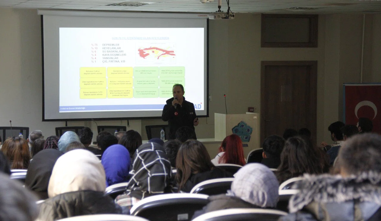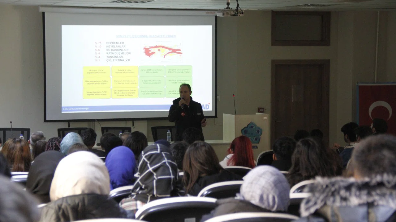 Necmettin Erbakan Üniversitesi Lojistik Yönetimi Bölümü öğrencilerine Eğitim Şube Müdürümüz Fethi Çoruk tarafından verilen eğitimde ‘Afet Farkındalık, AFAD Gönüllülük sistemi konuları ile uygulamalı Tahliye tatbikatı gerçekleştirilmiştir.