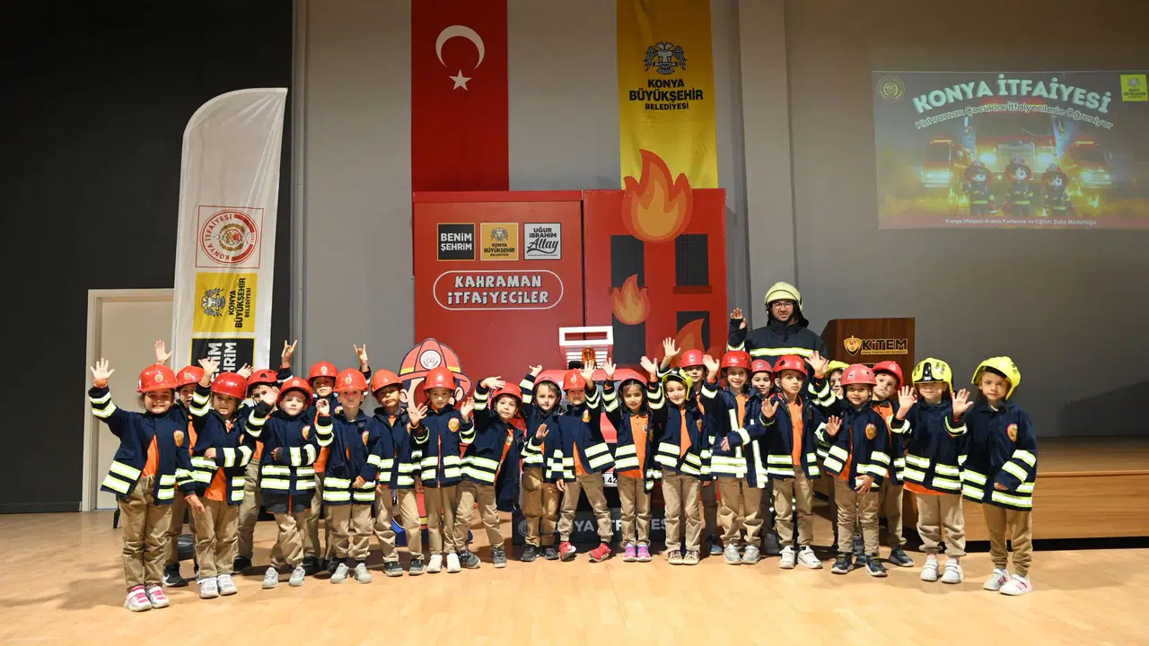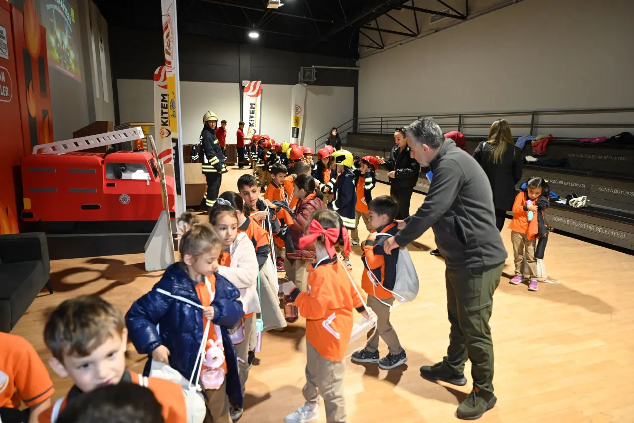 Konya Büyükşehir Belediyesi, 31 ilçedeki tüm ilkokul 1. sınıf öğrencilerine yönelik teorik ve uygulamalı itfaiye eğitimlerini sürdürüyor.