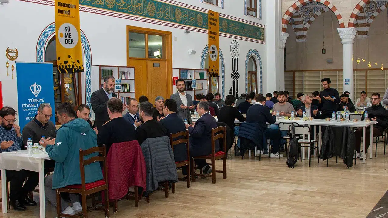 Selçuk Üniversitesi Mezunlar ve Mensuplar Derneği (SÜMEDER) ve Konya İl Müftülüğü iş birliğiyle gerçekleştirilen iftar programı kapsamında üniversite öğrencileri ramazan ayının manevi atmosferinde bir araya geldi.