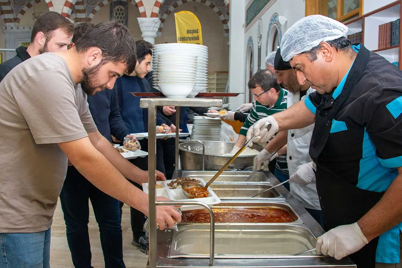 Selçuk Üniversitesi Rektör Yardımcısı Prof. Dr. Haldun Soydal, öğrencilere yönelik Selçuk Üniversitesi Mezunlar ve Mensuplar Derneği (SÜMEDER) ve Konya İl Müftülüğü iş birliğinde 16 ilçede iftar programı düzenlediklerini söyledi. Program kapsamında uluslararası öğrenciler ile engelli öğrenciler için de ayrı bir iftar programı planlamasında bulunduklarını ifade eden Prof. Dr. Soydal, “25 Şubat’ta da İktisadi ve İdari Bilimler Fakültesinde 500 kişilik, 5 Mart’ta da Fen Fakültesinde yine 500 kişilik bir organizasyonla iftar programı düzenledik. Her gün de Kampüs Merkez Camisi’nde 150 kişilik iftar yemeğimizle bu organizasyonlar gerçekleştirilecek. Şahsım ve Üniversitemiz adına Konya İl Müftülüğümüze, İl Müftümüz Prof. Dr. Ali Öge’ye, Rektörümüz Prof. Dr. Hüseyin Yılmaz Hocamıza ve Selçuk Üniversitesi Mezunlar ve Mensuplar Derneğine teşekkür ediyorum” diye konuştu.