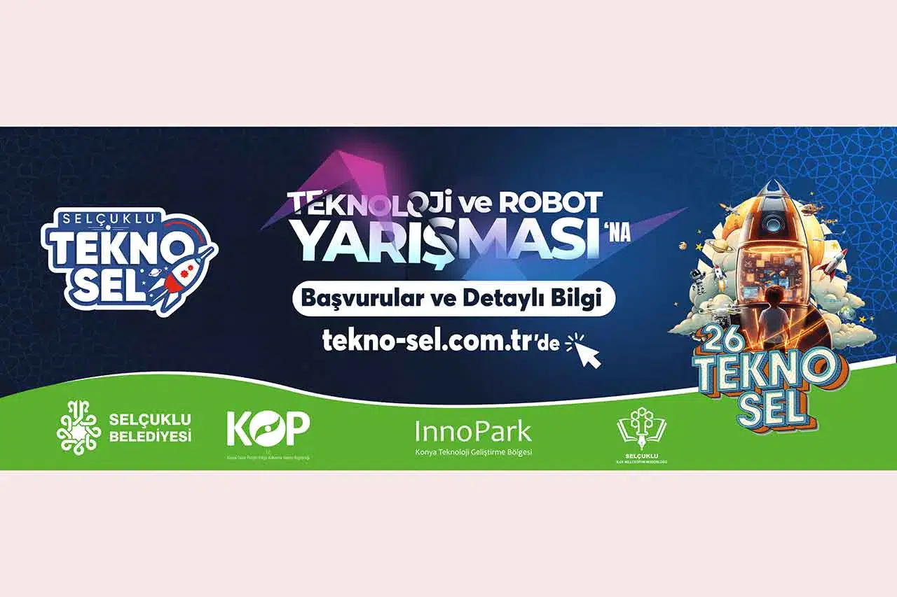 Selçuklu Belediyesi, Selçuklu İlçe Milli Eğitim Müdürlüğü, KOP Bölge Kalkınma İdaresi Başkanlığı ve İnnoPark iş birliğiyle düzenlenen yarışma için ön başvurular 9 Şubat’ta başlayacak ve 3 Nisan’a kadar devam edecek. Etkinlikler, 12–14 Mayıs 2026 tarihleri arasında Selçuklu Belediyesi Uluslararası Spor Salonu’nda, 15–17 Mayıs 2026 tarihleri arasında ise Selçuklu Kongre Merkezi’nde gerçekleştirilecek. Yarışmalar, Temel Seviye Çizgi İzleyen, İleri Seviye (Hızlı) Çizgi İzleyen, Labirent Ustası, Mini Sumo ve Yumurta Toplayan, Tasarla Çalıştır, İnsansız Hava Aracı (İHA-Mini Drone), TEKNOSEL Özel Kategorisi, Serbest Proje Kategorisi, mBlock Kategorisi ve teması Gazze olan Yapay Zeka Film Yarışması kategorilerinde gerçekleştirilecek. Konya genelinden ortaokul, lise ve üniversite düzeyindeki başvuruların kabul edileceği yarışmayla ilgili tüm detaylara tekno-sel.com.tr adresinden ulaşım sağlanacak.