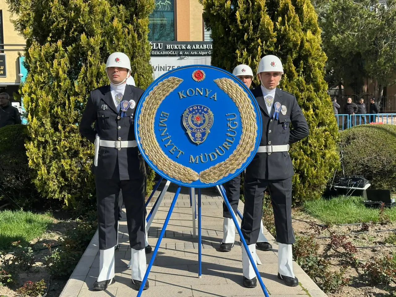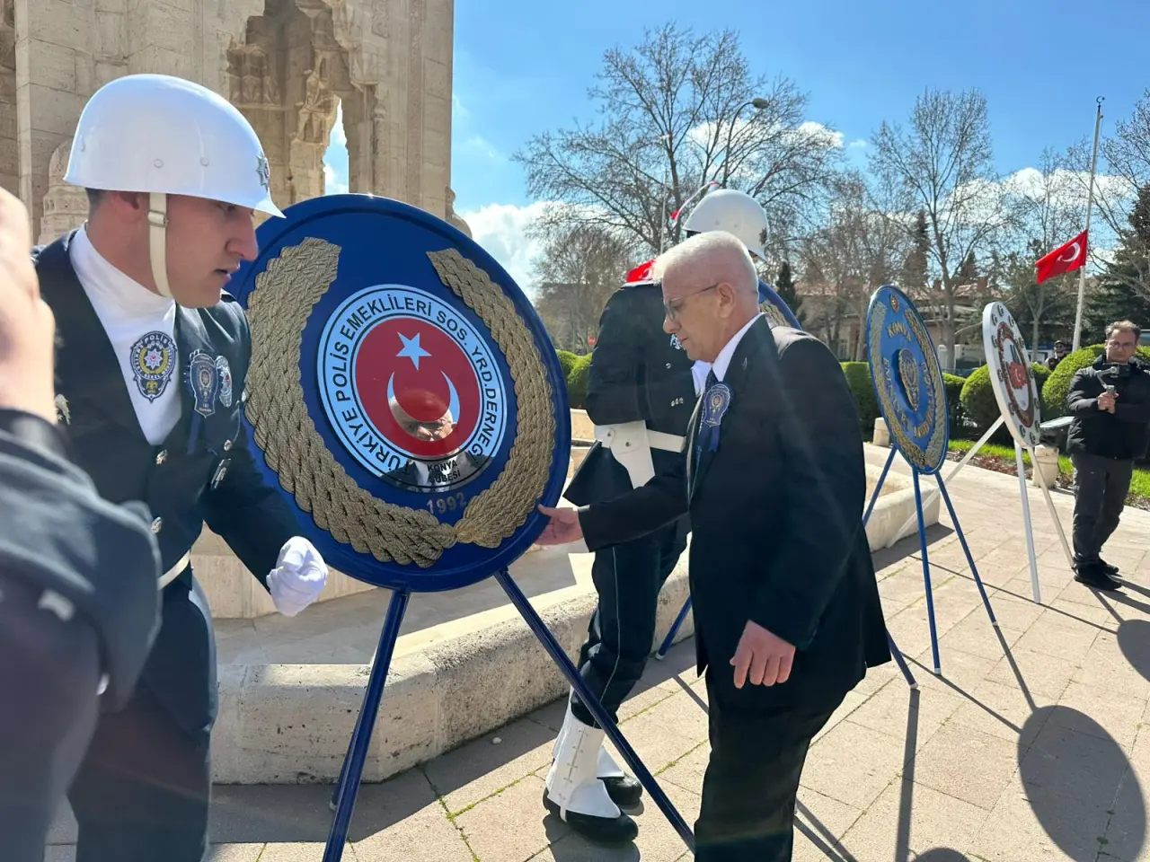 Tören kapsamında Konya İl Emniyet Müdürü Maksut Yüksek ile Türkiye Polis Emeklileri Sosyal Yardım Derneği Konya Şube Başkanı Hasan Hüseyin Yazar tarafından Atatürk Anıtı’na çelenk sunuldu.