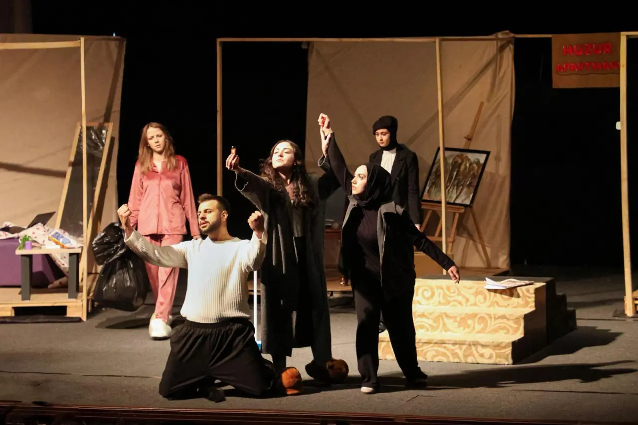 Mevlâna Kültür Merkezi’nde sahnelenen oyunda, bir apartmanda yaşanan gündelik olaylar üzerinden insan ilişkileri, toplumsal alışkanlıklar ve göz ardı edilen meseleler esprili bir dille ele alındı. Oyuncuların sahnedeki uyumu, dekor ve performansları seyircilerden tam not aldı.