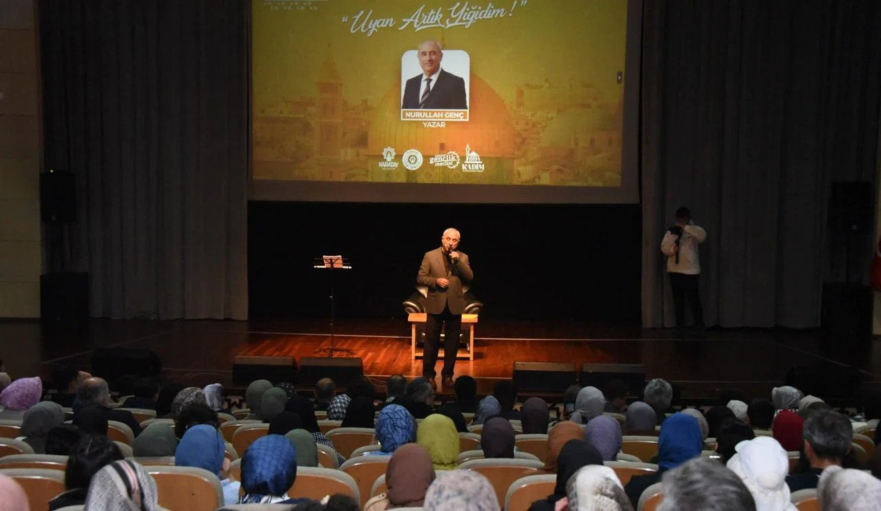 Mevlana Kültür Merkezi Sultan Veled Salonu’nda düzenlenen konferansta Nurullah Genç, İsrail’in 7 Ekim’den bu yana saldırılarını sürdürdüğü Gazze Şeridi’nde yaşananları, uluslararası toplumun konuya dair tepkisizliğinin yanı sıra dünya üzerinde zulüm gören Müslümanları ele aldı.