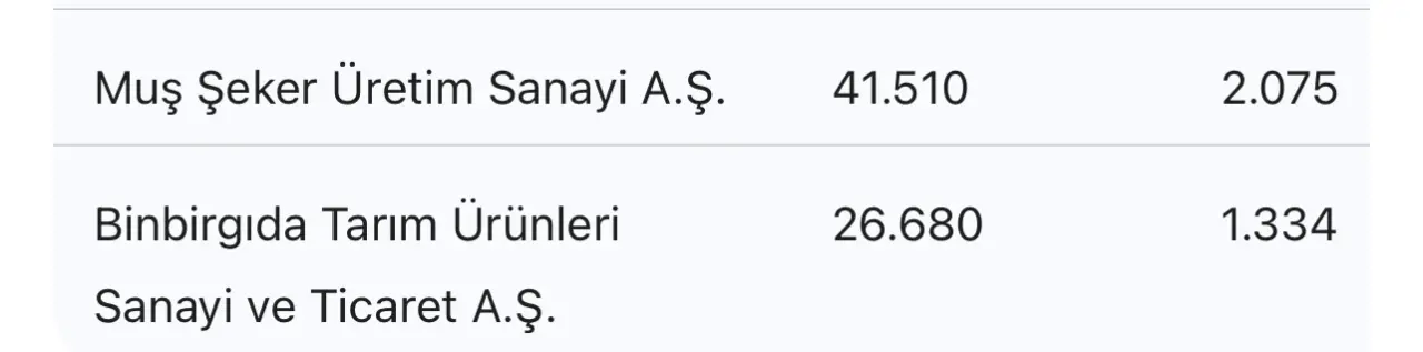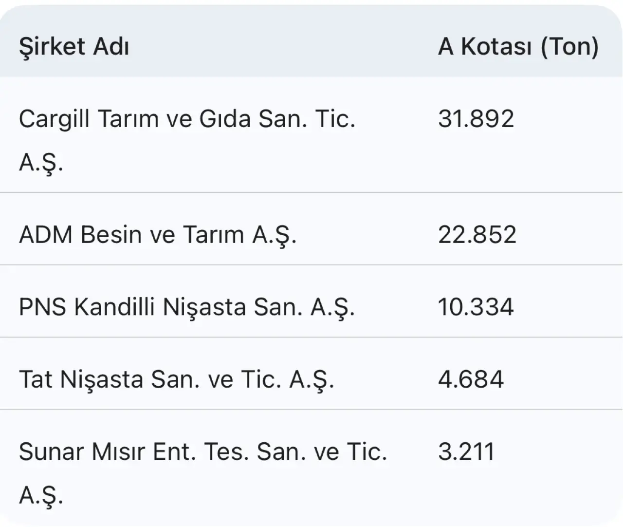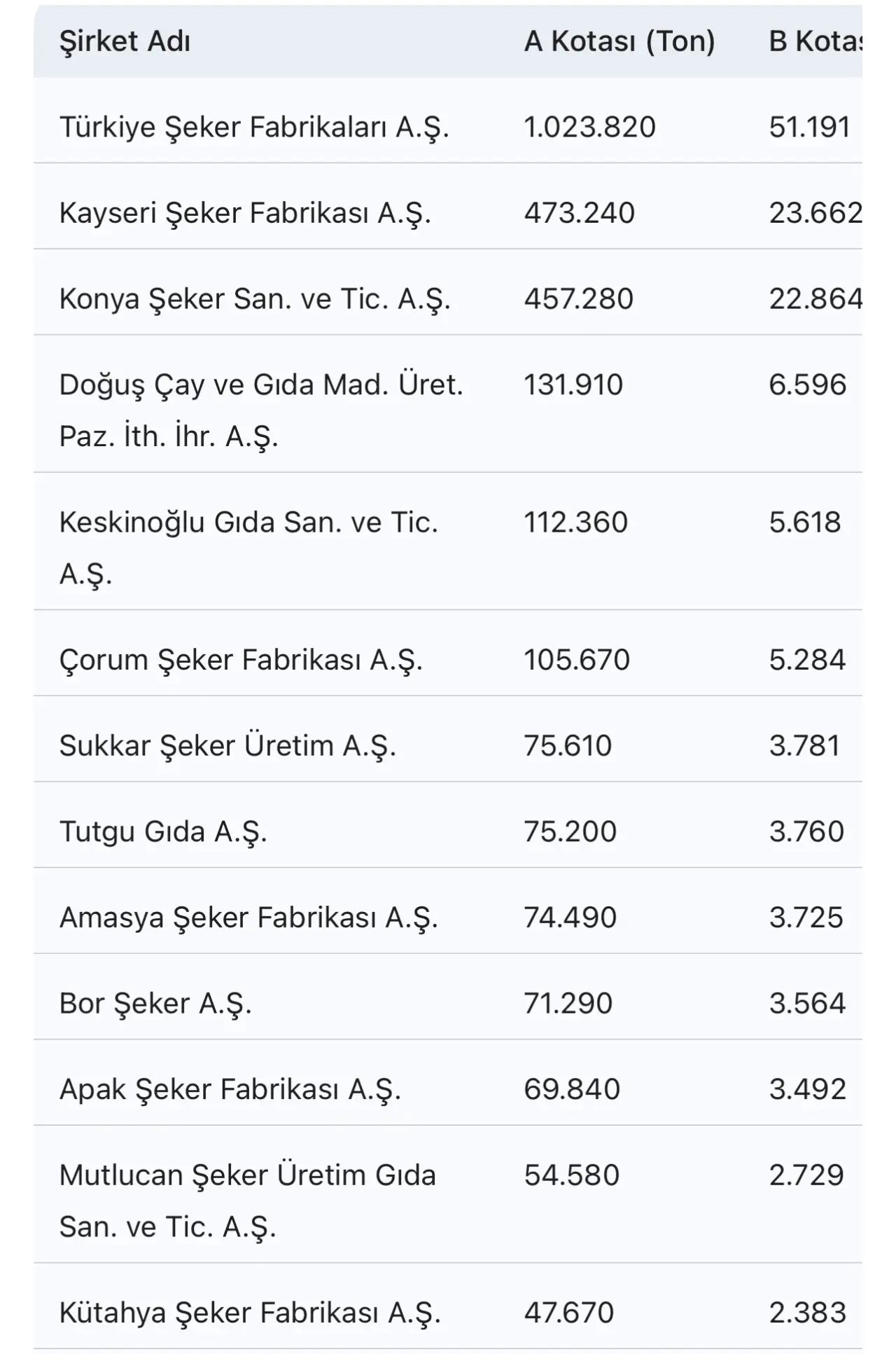 2025/2026 Pazarlama Yılı pancar şekeri kotaları, aşağıdaki şirketlere tahsis edildi: