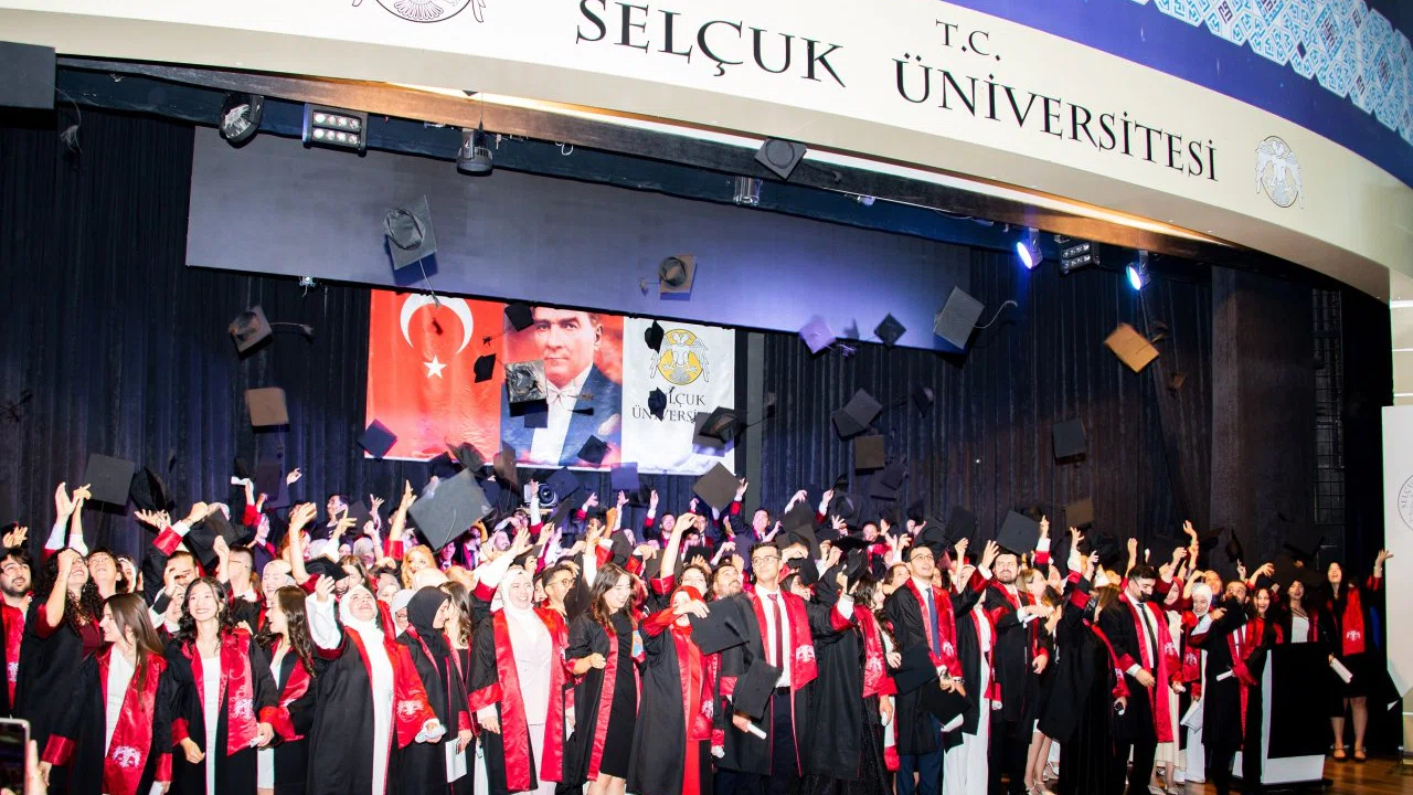 Selçuk Üniversitesi (SÜ) Tıp Fakültesi 2024-2025 Eğitim Öğretim Yılı Mezuniyet Töreni, Sultan Alparslan Kültür Merkezi’nde gerçekleştirildi. Tören, saygı duruşu ve İstiklal Marşı’nın okunmasıyla başladı. Dönem birincisi Dr. Şeyda Nur Tanık, mezun arkadaşları ve ailelerine hitap etti.