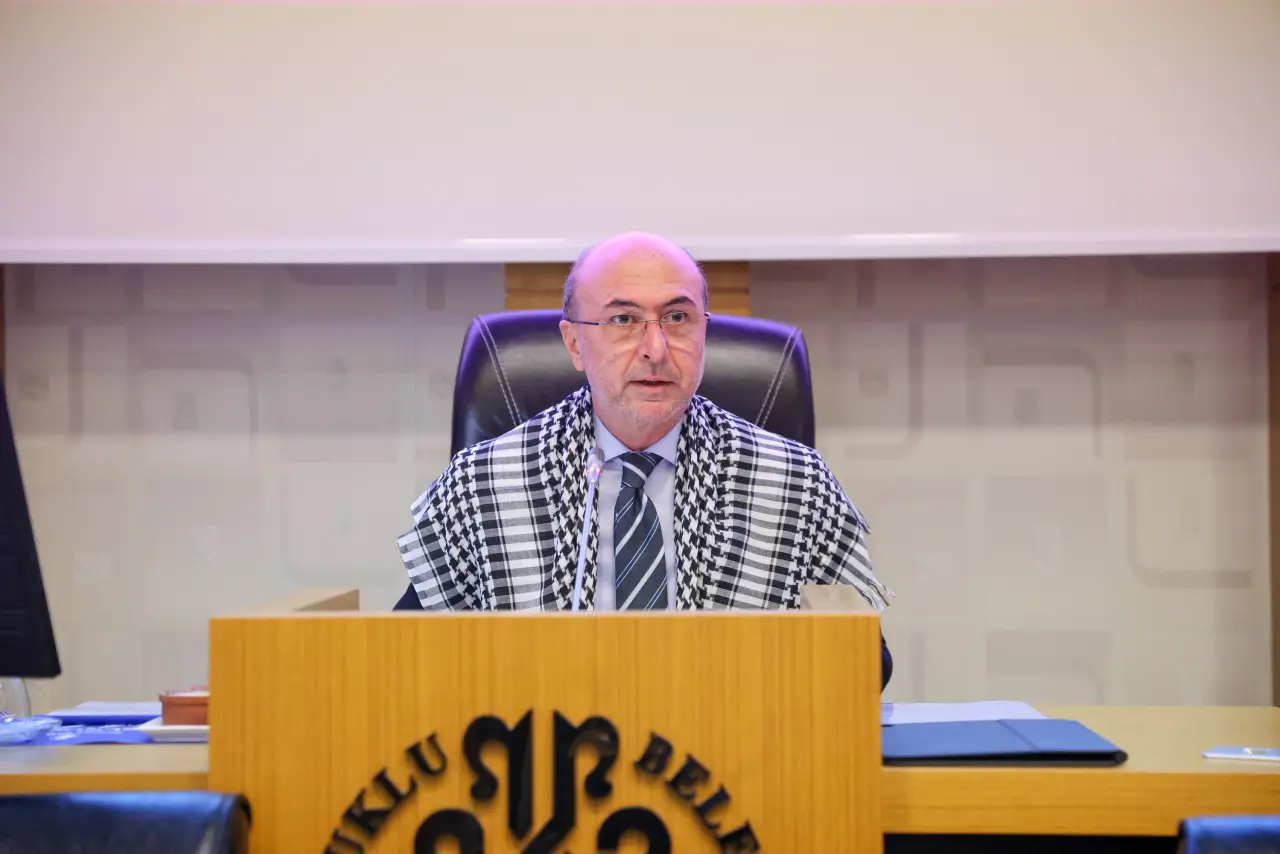 Toplantıya, Başkan Pekyatırmacı ve meclis üyeleri Filistin kefiyesiyle katıldı. Başkan Pekyatırmacı, Gazze’deki zulme sessiz kalınamayacağını belirterek, “İnsani yardımların en kısa sürede oradaki mazlum halka ulaşması öncelikli temennimiz” dedi.