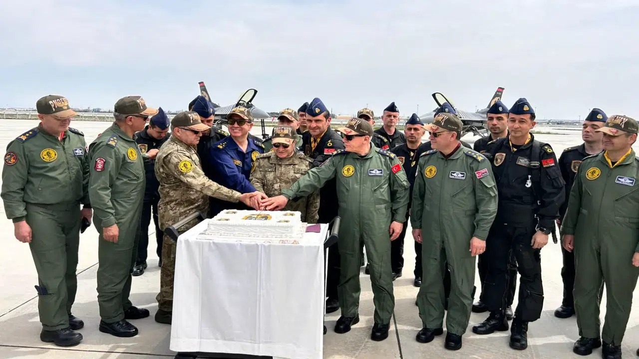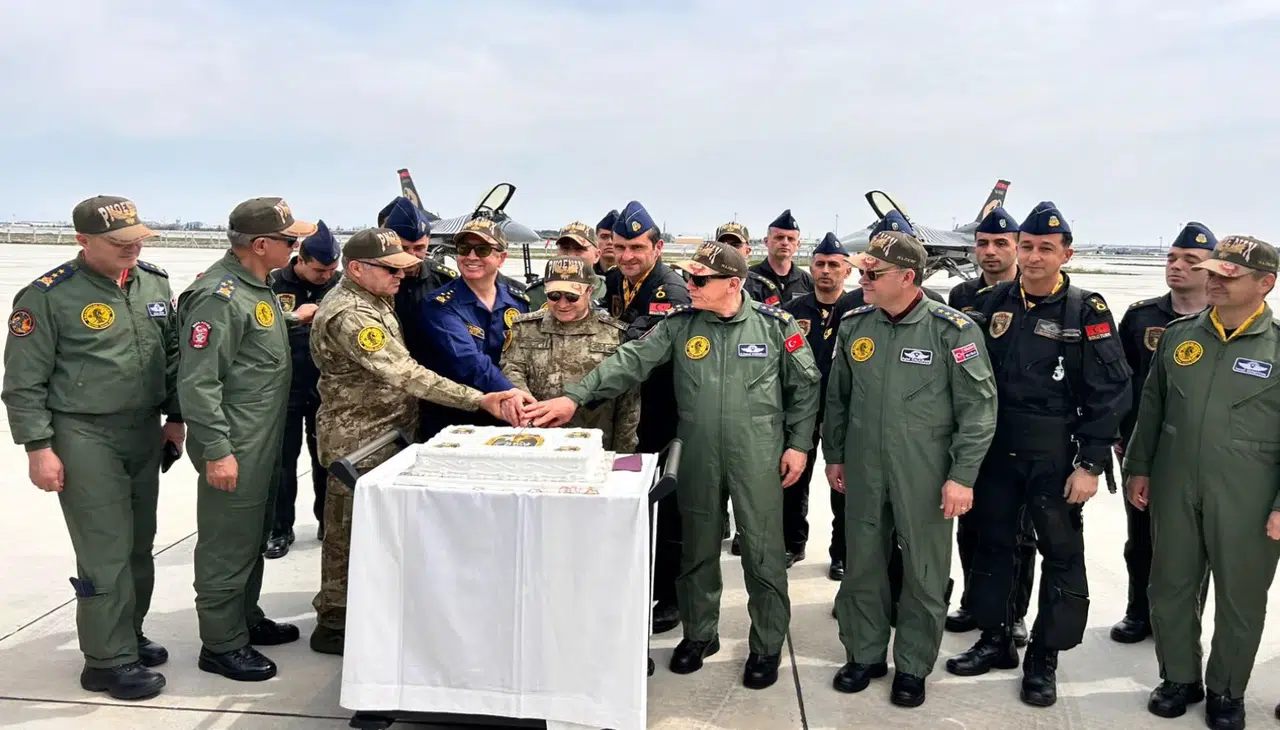 Gösterinin ardından SOLOTÜRK uçaklarının aprona yaklaşmasıyla birlikte askeri heyet ve pilotlar bir araya gelerek hazırlanan pastayı kesti.
