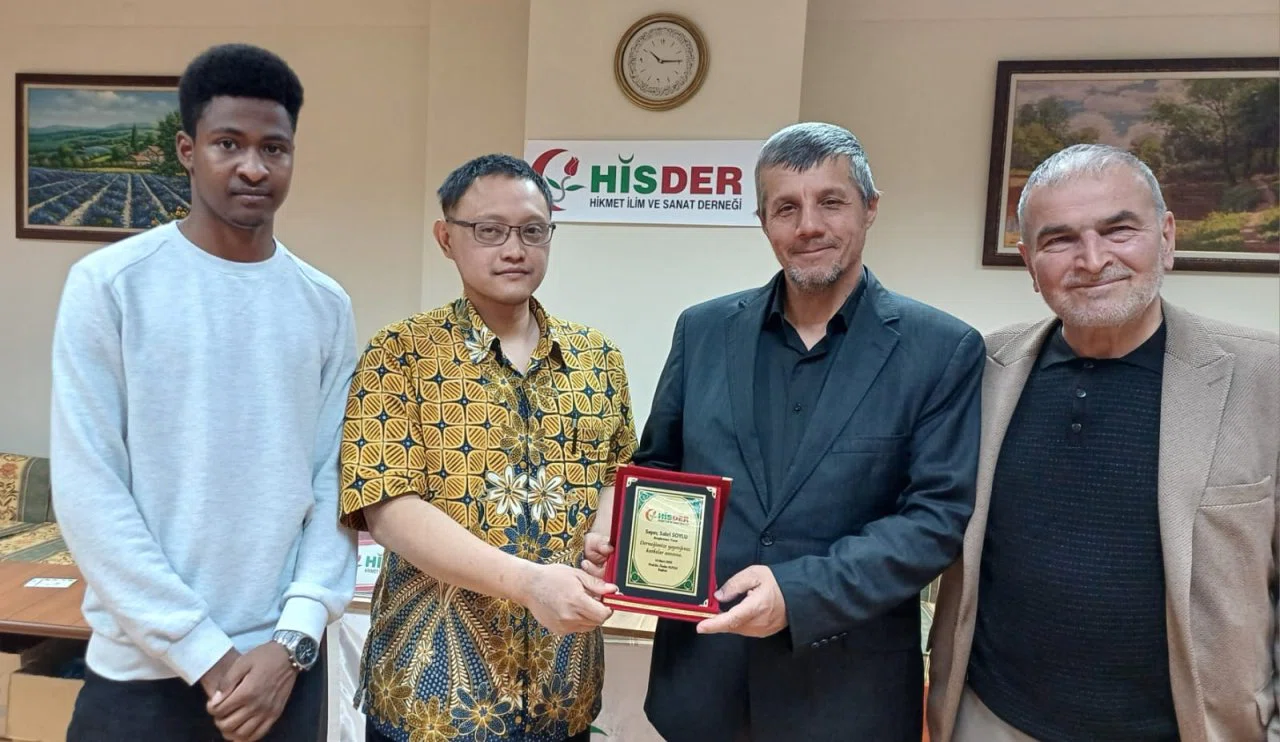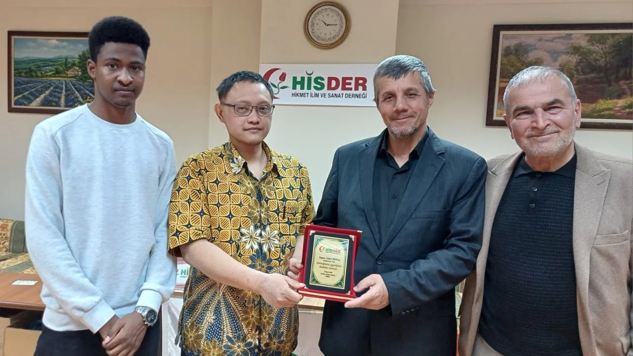 Toplantı sonunda Soylu’ya HİSDER üyelerinden emekli öğretmen Mehmet Altuntaş, Dr. Arief İsfiman Saleh ve Khalid Adam Daeed Essalah tarafından şilt takdim edildi.