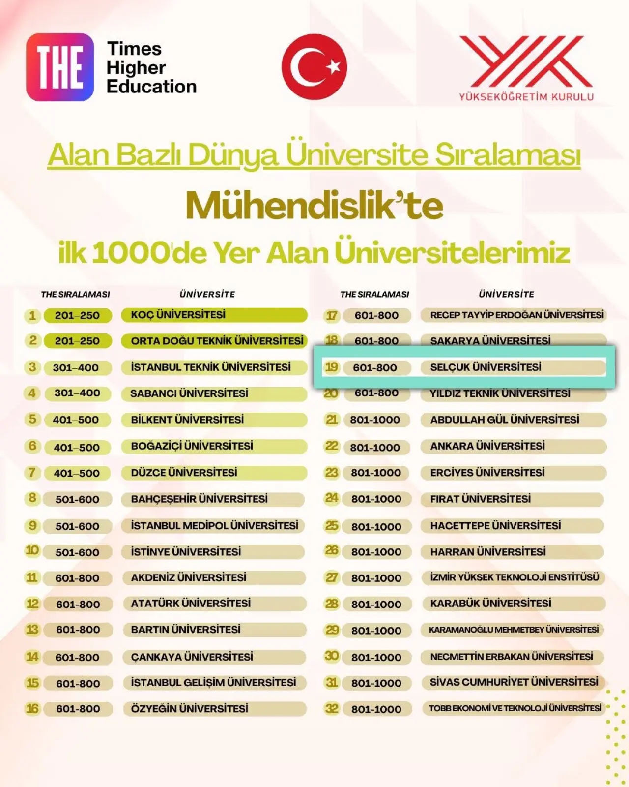 Selçuk Üniversitesi yetkilileri, başarının tüm akademik ve idari personelin ortak emeğinin sonucu olduğunu vurgulayarak, küresel ölçekte rekabet gücünü artırmaya yönelik çalışmaların kararlılıkla devam edeceğini ifade etti.