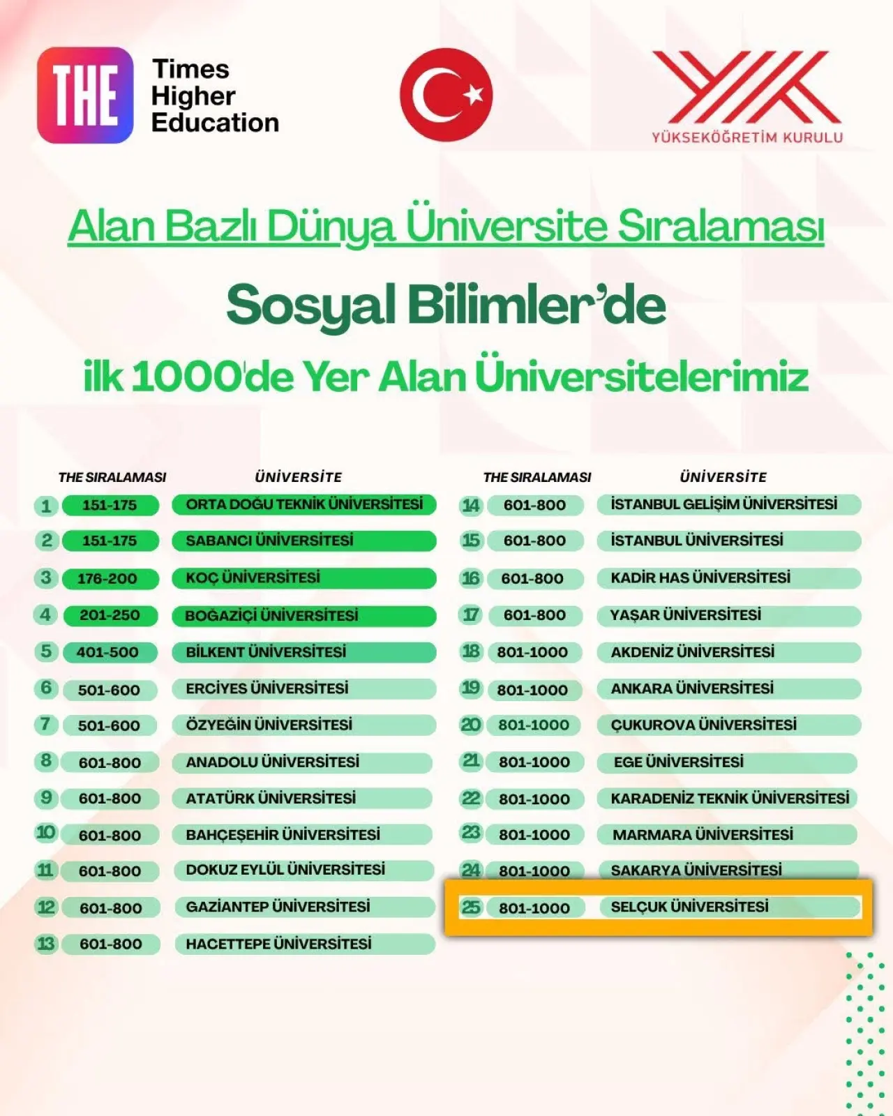 Elde edilen bu başarıyla Selçuk Üniversitesi; eğitim-öğretim kalitesi, bilimsel yayın performansı ve uluslararası iş birlikleri alanlarındaki istikrarlı yükselişini sürdürdüğünü ortaya koydu. Üniversitenin son yıllarda hayata geçirdiği akademik ve araştırma odaklı çalışmaların, uluslararası sıralamalara olumlu yansıdığı belirtildi.