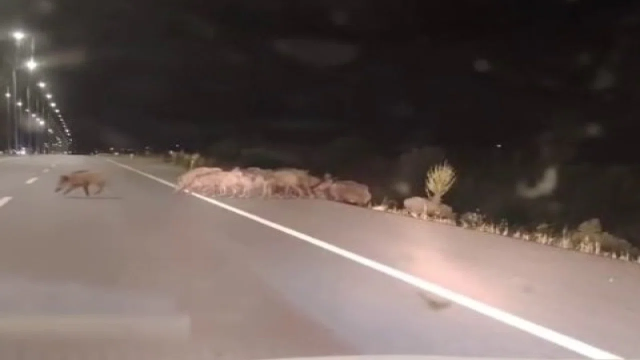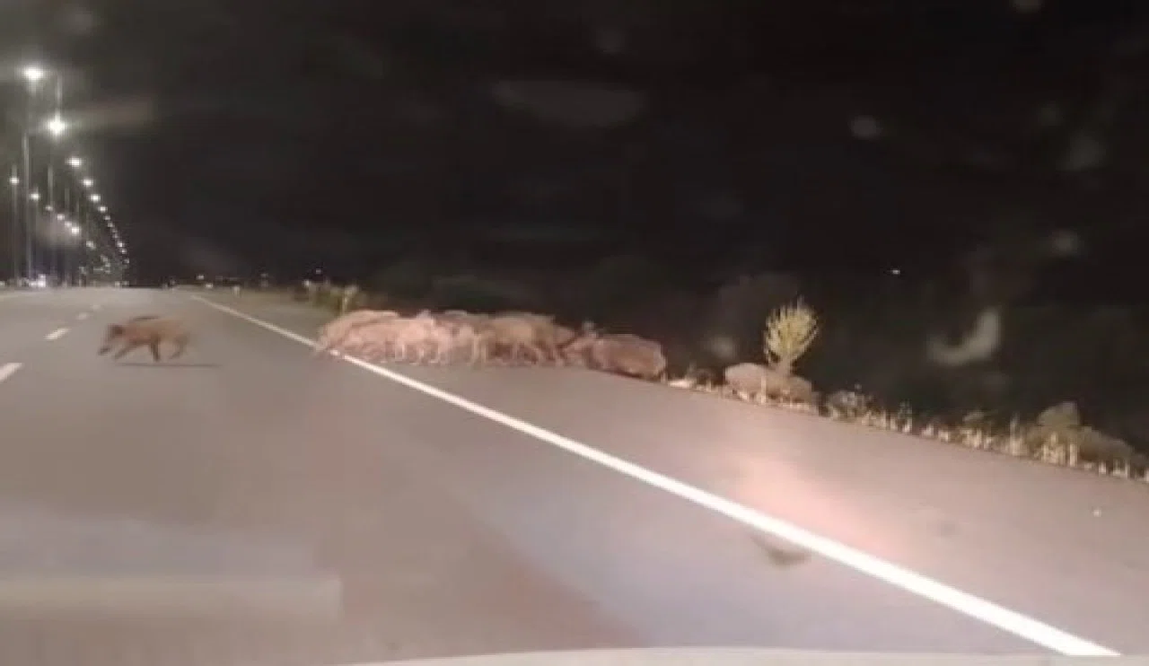Görüntülerde, çok sayıda yaban domuzunun yolun karşısına geçmeye çalıştığı görülüyor. Sürücülerin dikkati sayesinde olası bir kaza önlenirken, yetkililer bu güzergahı kullanan vatandaşlara uyarılarda bulundu.