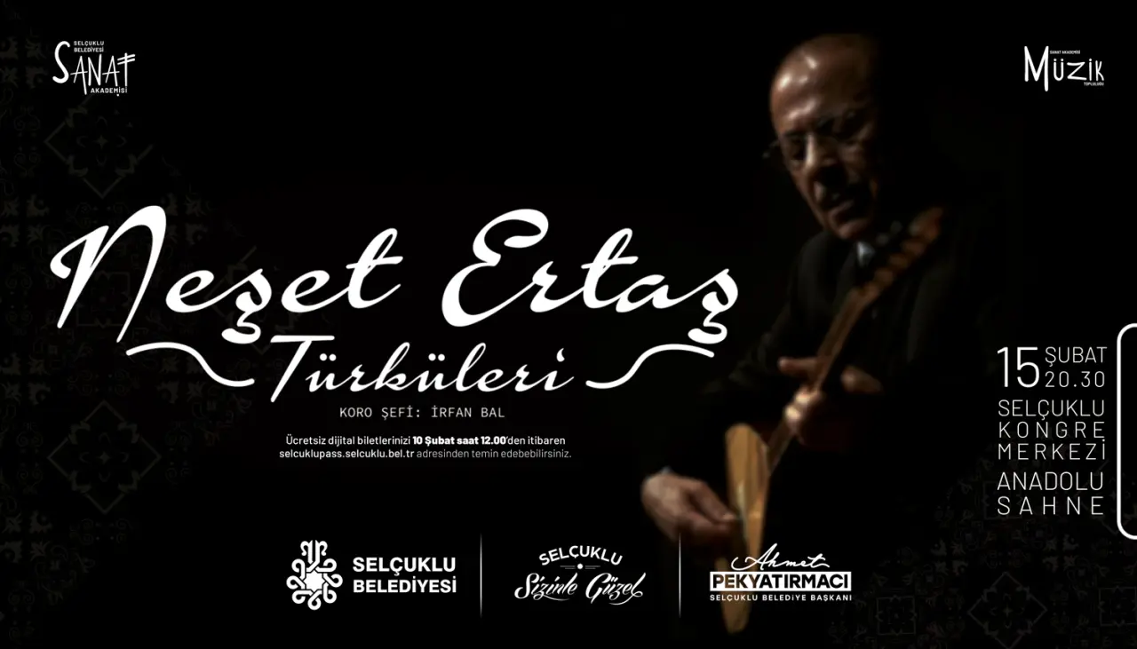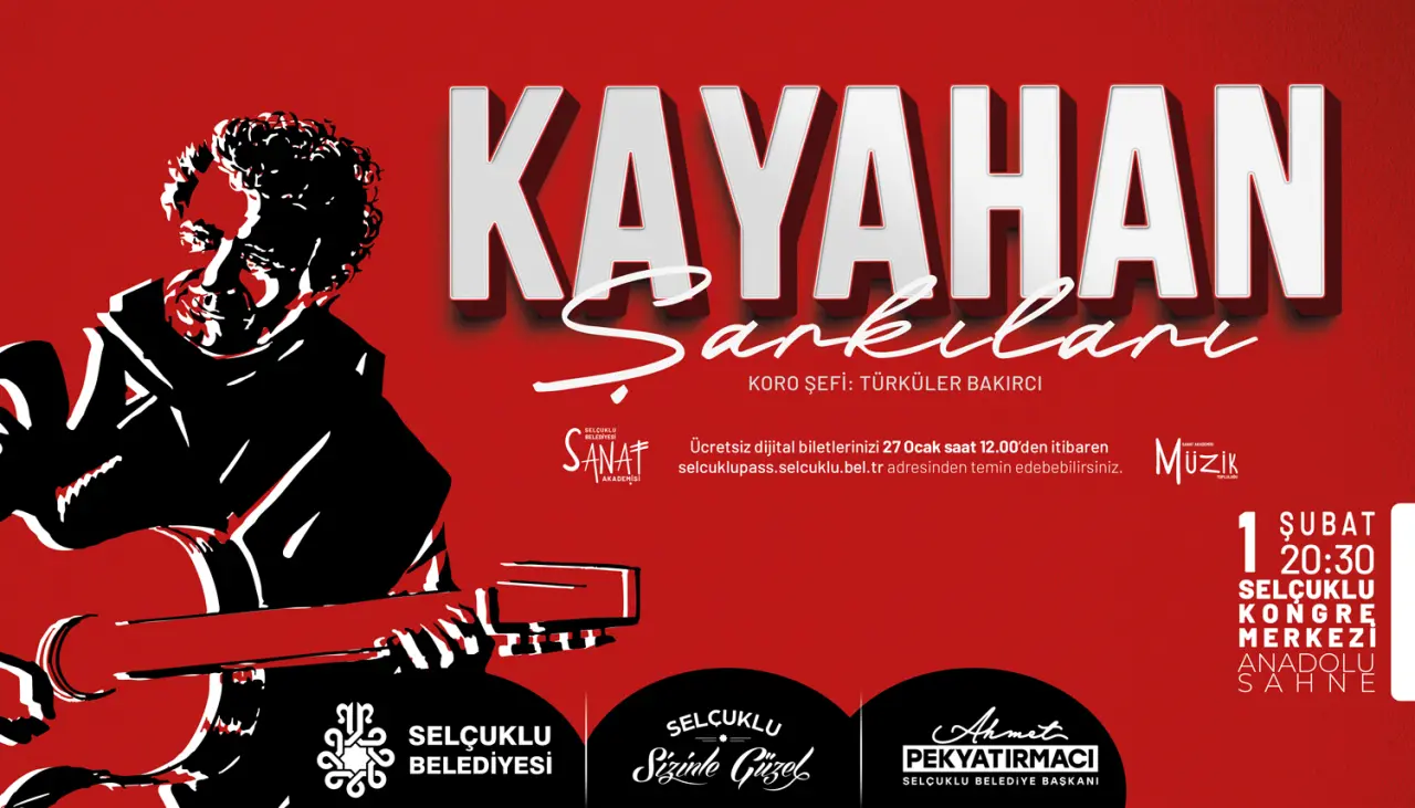 Türk müziğinin iki unutulmaz ismi, ‘Kayahan’ ve ‘Neşet Ertaş’ ın eserleri Selçuklu Kongre Merkezi Anadolu Sahnesi’nde hayat bulacak Türk müziğinin sevilen bestecisi Kayahan’ın hafızalara kazınan şarkıları, 1 Şubat Pazar akşamı saat 20.30’da sahnede yankılanacak. Gecede usta sanatçının unutulmaz eserleri, müzikseverlere duygusal ve coşkulu anlar yaşatacak. Yine sözüyle ve sazıyla Türk milletinin gönlünde taht kuran Türk halk müziğinin efsane ismi Neşet Ertaş’ın türküleri de 15 Şubat’ta Anadolu Sahnesi’nde dinleyiciyle buluşacak. Bozkırın tezenesi Ertaş’ın türküleri Sanat Akademisi Müzik Topluluğu’nun yorumuyla sanatseverlere duygu dolu bir gece yaşatacak.