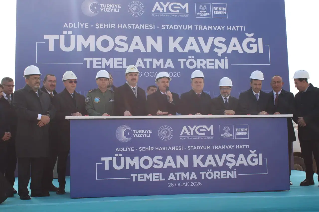 Ulaştırma ve Altyapı Bakanlığı ile Konya Büyükşehir Belediyesi tarafından yürütülen Adliye–Şehir Hastanesi Tramvay Hattı 2. Etap çalışmaları kapsamında TÜMOSAN Kavşağı Temel Atma Programı gerçekleştirildi.