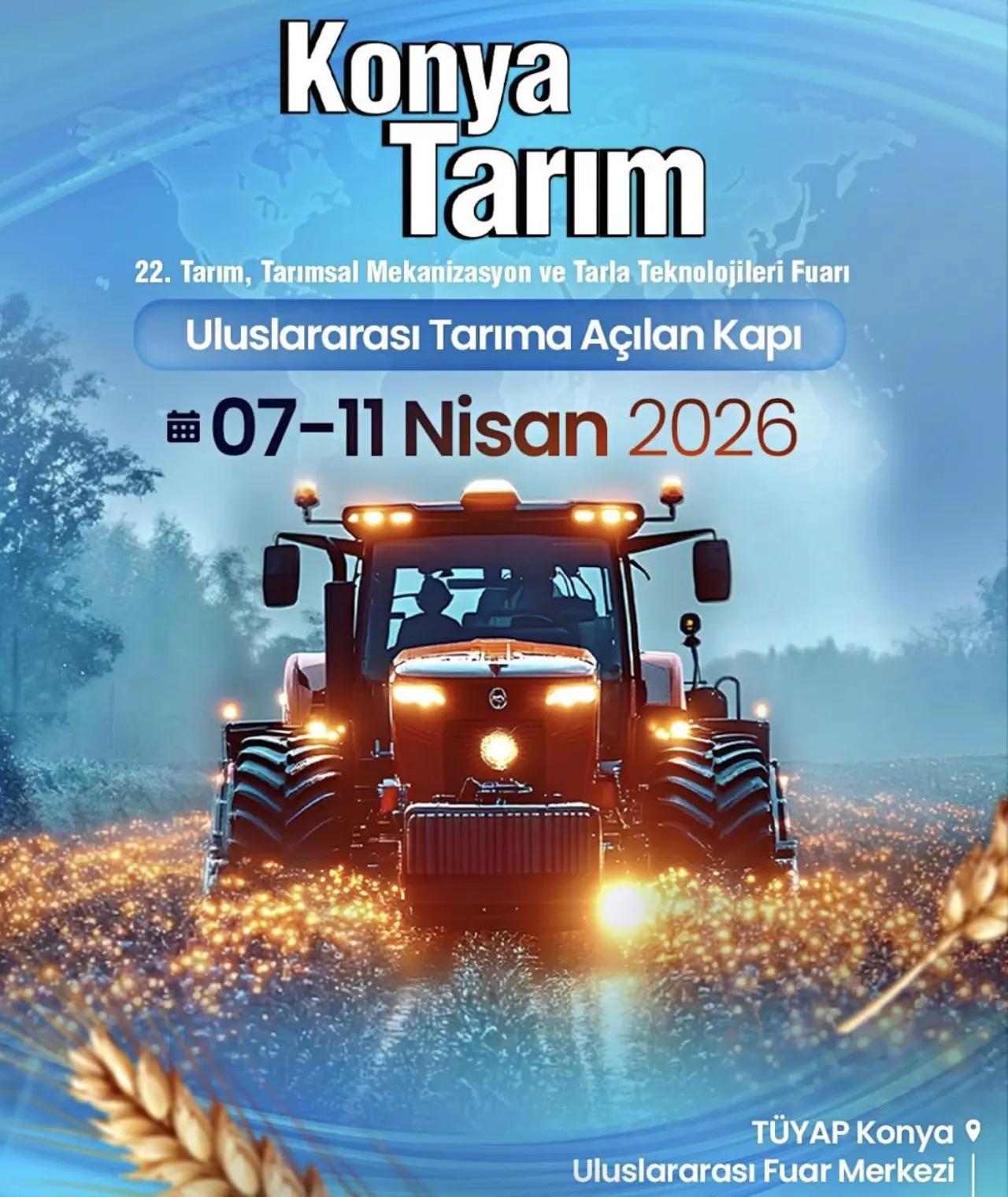 Türkiye’nin ve bölgenin en kapsamlı tarım organizasyonlarından biri olan Konya Tarım Fuarı, 7–11 Nisan 2026 tarihleri arasında TÜYAP Konya Uluslararası Fuar Merkezi’nde düzenlenecek. Tarım sektörünün önde gelen markalarını, yenilikçi teknolojileri ve uluslararası ziyaretçileri bir araya getirecek fuar, sektöre yön veren gelişmelerin sergileneceği önemli bir buluşma olacak.
