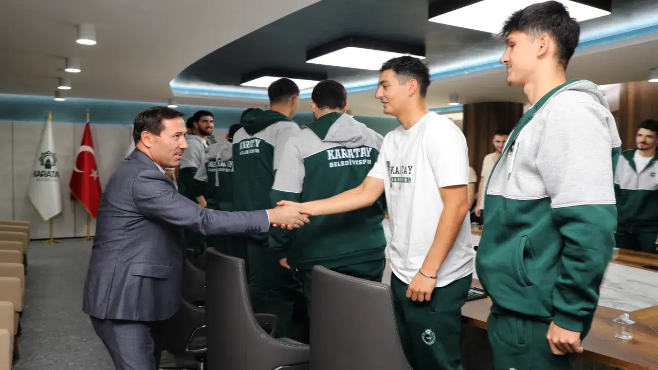 Karatay Belediyesi’nin destekleriyle kısa sürede önemli başarılara imza atan Karatay Belediyespor Basketbol A Takımı, yeni sezon öncesinde Karatay Belediye Başkanı Hasan Kılca’yı makamında ziyaret etti.