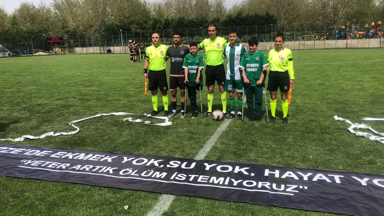 Bozkır Gençlerbirliği ile Karatay Belediyespor arasında oynanan karşılaşma öncesinde Gazze’li çocuklar ile maçın hakemleri ve futbolcular birlikte seremoniye çıktılar.