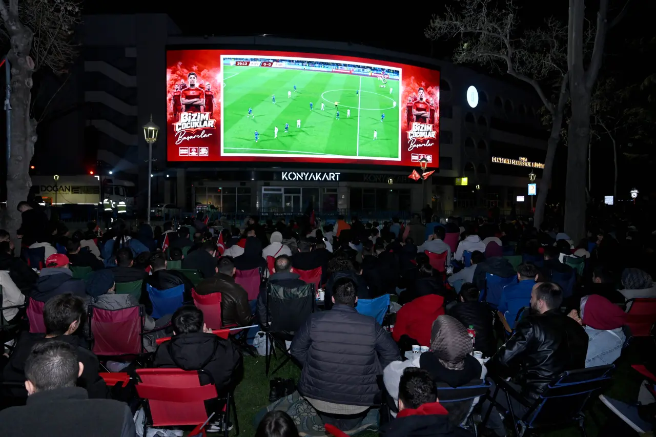 Konya Büyükşehir Belediyesi, Türkiye’nin Kosova’yı 1-0 mağlup ederek Dünya Kupası’na katılmaya hak kazandığı maçı dev ekrandan canlı yayınladı. A Milli Futbol Takımı, Haziran ayında Amerika, Kanada ve Meksika ortaklığıyla düzenlenecek Dünya Kupası finallerine katılabilmek için play-off finalinde deplasmanda Kosova ile karşı karşıya geldi. Milli Takım kritik mücadeleden 1-0 galip ayrılarak 24 yıl aradan sonra yeniden Dünya Kupası bileti almayı başardı.