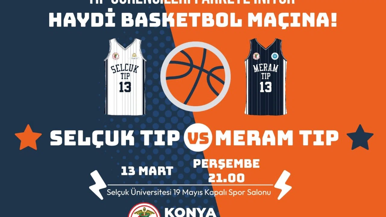 Selçuk Tıp ve Meram Tıp öğrencileri arasındaki basketbol maçı 13 Mart Perşembe günü saat 21.00’de Selçuk Üniversitesi 19 Mayıs Kapalı Spor Salonu’nda yapılacak. Öğrenciler ve sporseverler, bu heyecanlı karşılaşmayı izlemeye davet ediliyor.