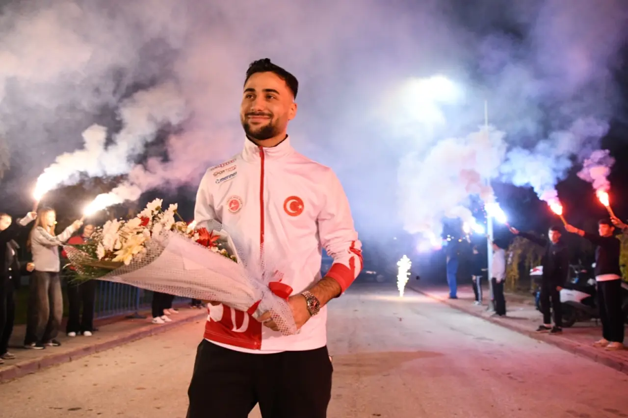 Dünya üçüncülüğünün ardından memleketi Konya’ya dönen Çetin Karapınar, Selçuklu Belediyesi Uluslararası Spor Salonu’nda arkadaşları ve ailesi tarafından coşkuyla karşılandı. Türk bayrakları, pankartlar, meşaleler ve havai fişek gösterileriyle hazırlanan sürpriz karşılama töreni duygu dolu anlara sahne oldu.