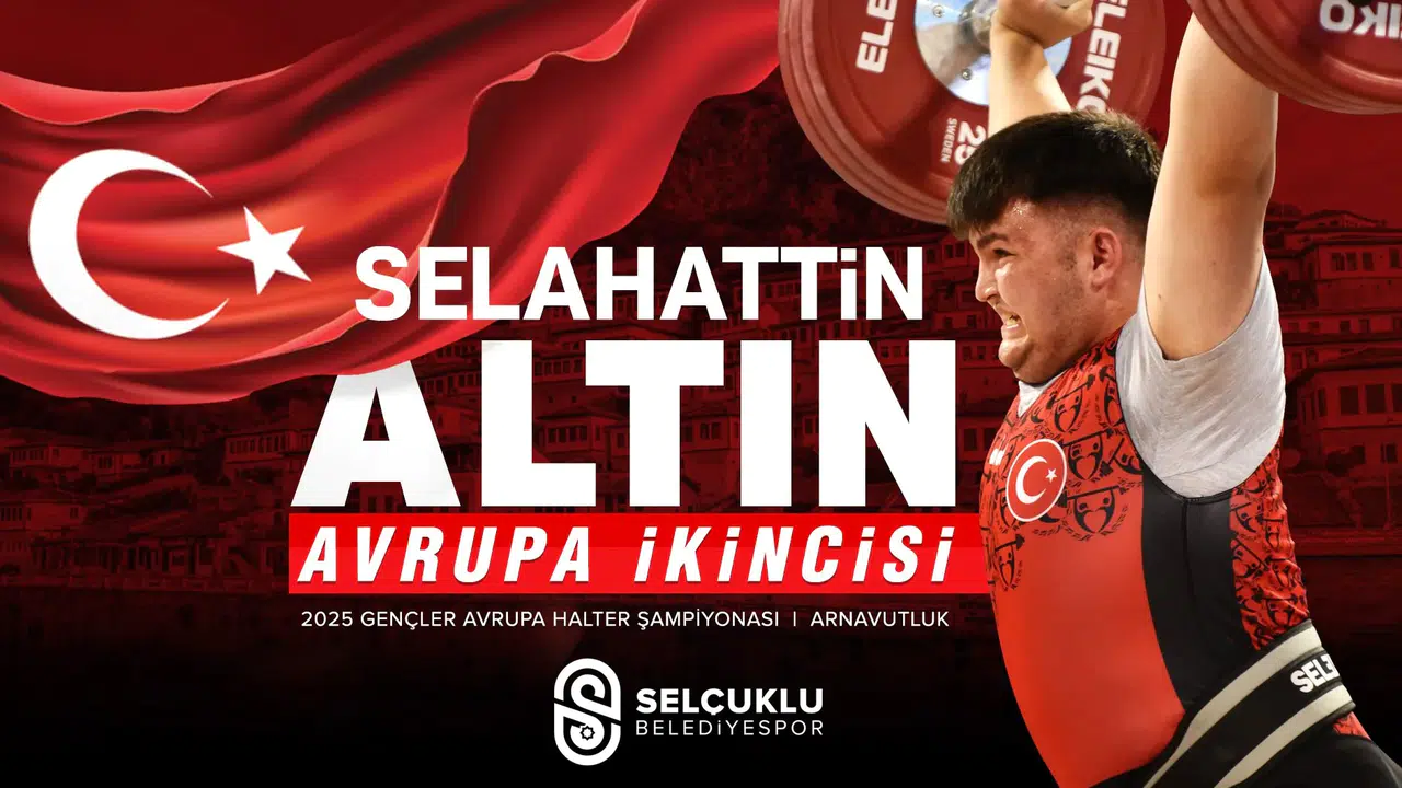 Arnavutluk’ta düzenlenen Gençler Avrupa Halter Şampiyonası’nda ülkemizi temsil eden Selçuklu Belediyespor Kulübü milli sporcusu Selahattin Altın, büyük bir başarıya imza attı. Durres kentinde yapılan organizasyonda Selahattin Altın, +110 kilo kategorisinde koparma, silkme ve toplamda olmak üzere 3 gümüş madalya kazanarak Avrupa ikincisi oldu.