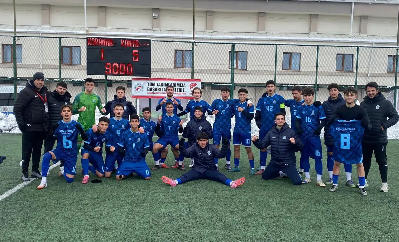 Selçuklu Belediyespor U19 Takımı, TFF Gelişim Ligi 5. Grup 16. hafta mücadelesinde deplasmanda Karaman FK ile karşılaştı. Mavi-beyazlılar, rakibini 5-1 mağlup etti ve başarılı performansını sürdürdü.